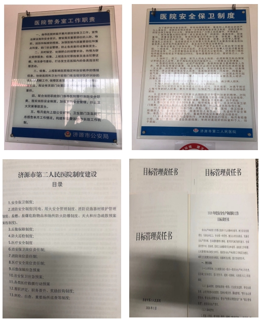 三防建设是屏障。筑牢安全发展屏障,人防物防技防缺一不可,我院累计投资100多万元,积极构建医院现代化安全视频监控体系,重点部位安装视屏监控报警系统和安全防盗网,设置高清摄像头178处,实现全院24小时全覆盖;聘请保安人员14名,进一步加强重点时段、重点部位的安保巡查,确保防火防盗巡逻到位,医院运行安全有序。