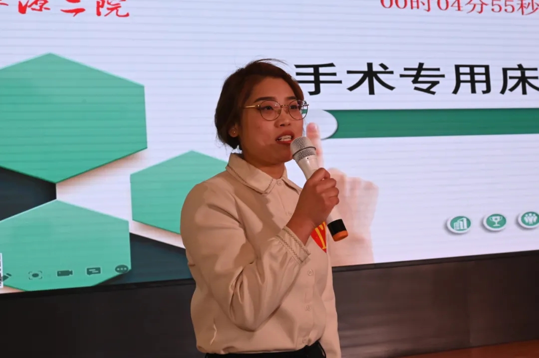 活动最后,济源市总工会副主席李文敏作重要讲话。她表示,本次竞赛取得了圆满成功,必将进一步激发职工学技术、练技能的热情,促进职工护理技能、应急能力的提升。她强调,2022年是济源示范区三年一届的竞赛年,届时将筹备举办第七届全区职工职业技能竞赛。通过竞赛可以获得和同行技能交流的机会,提高医疗技术水平,挖掘优秀人才为五一劳动奖章、大工匠 、技术能手等评选做人选储备。她认为,二院职工肯担当、能作为、勇创新,因此希望大家积极参加,勇争荣誉,彰显风采。同时,她希望广大医护人员以本次竞赛为契机,立足岗位,创新创造,投身医疗领域主战场,为济源发展建功立业。