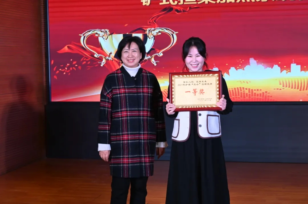 济源市总工会副主席李文敏,济源市卫健委副主任、二院院长薛继东,济源市卫健委医政科科长田小周,济源二院副书记任海燕现场分别为一、二、三等奖及优秀奖获奖选手颁奖。