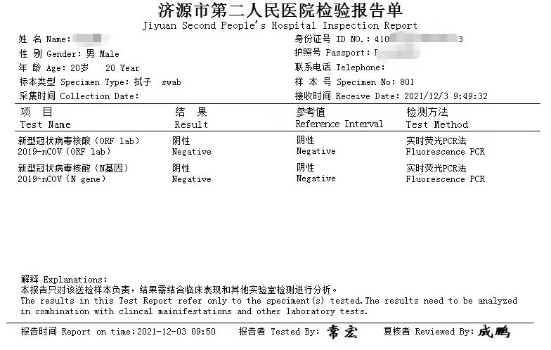 为响应群众需求,为出境人员提供方便,即日起,我院正式提供核酸检测英文版报告单。