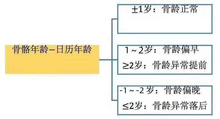 骨龄减去日历年龄在1岁以内,都算正常。超过1岁,则是发育提前/延迟,一旦超过2岁及以上,就算是异常了,这个时候是一定需要到医院去检查干预的。