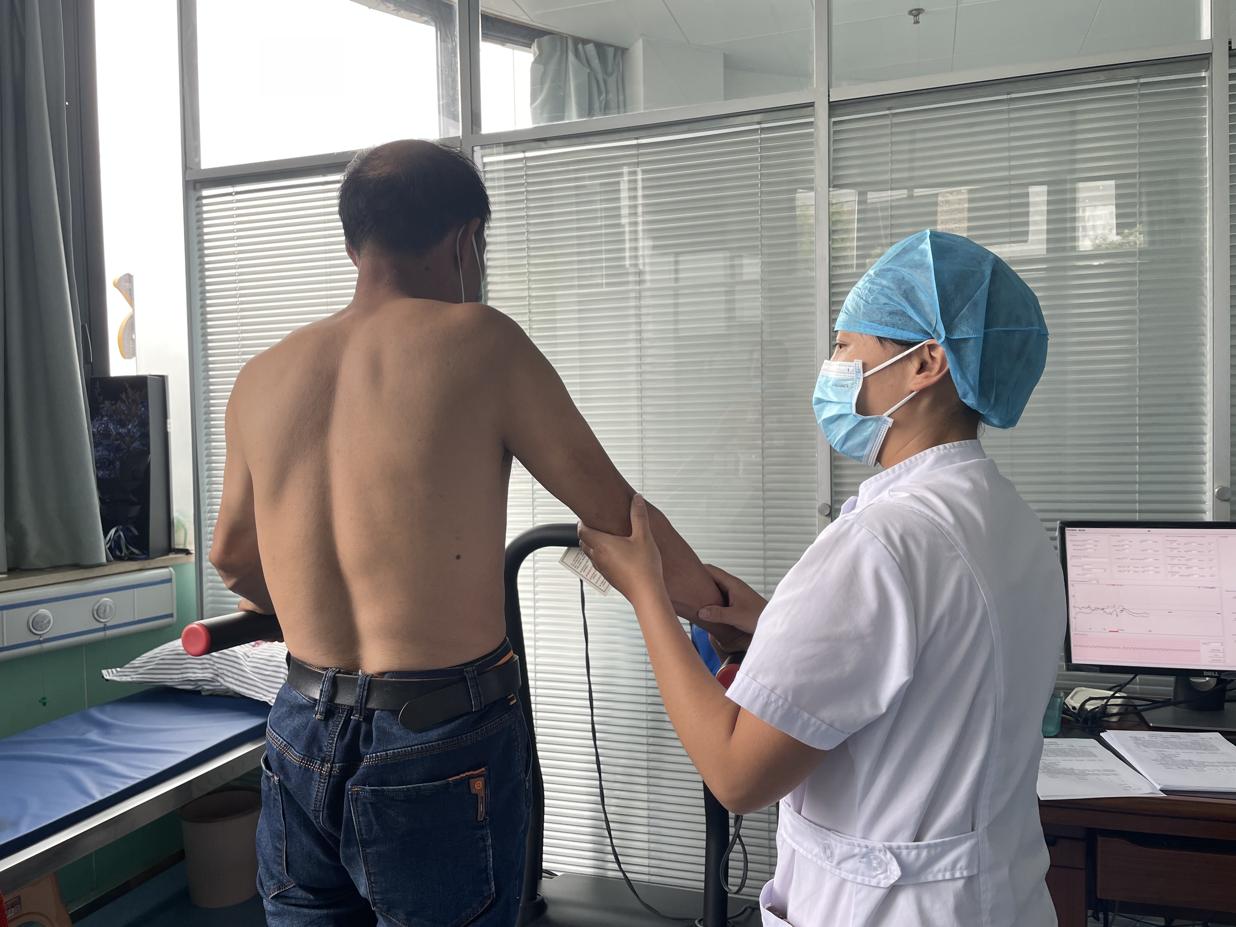10:40,此时与约好的陪诊时间已经过去了二十分钟,但是王先生的平板运动也才准备开始,作为一名医护人员深知这个检查不能少了人陪同,站在专业的角度,秦静决定陪王先生做完检查,在告知了平板运动注意事项后,王先生开始了他的第一次平板运动。30分钟后,检查结束,此时已经是十一点多了,拿到结果,又来到了楼下找曹主任,曹主任看着结果对患者告知注意事项,此时陪诊也算圆满结束。