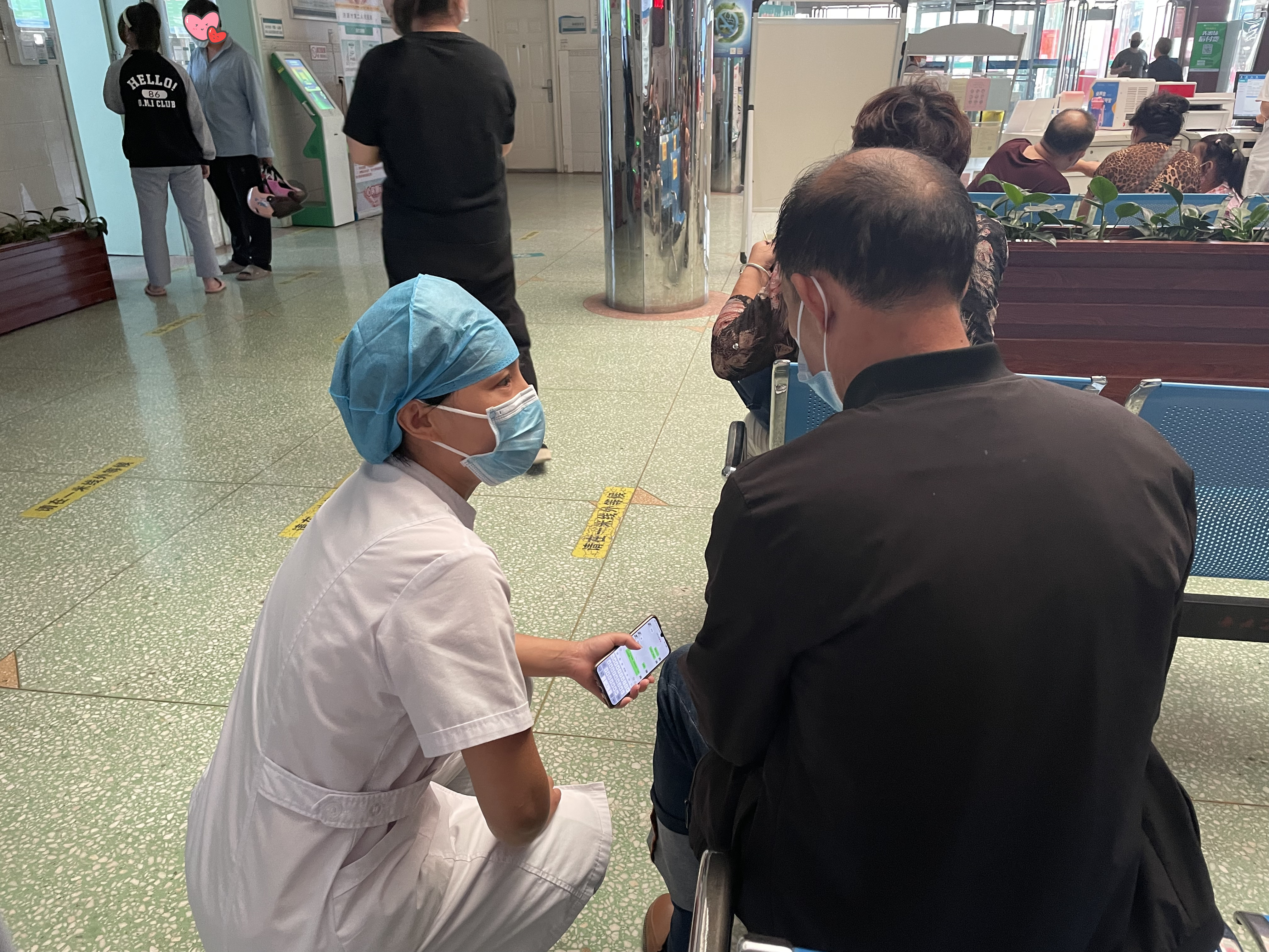 9月19日8:15,距离约定的陪诊时间已经快到了,陪诊工作人员秦静再次打电话确认本次的陪诊对象王先生是否已到二院,在听到王先生说自己已经到医院了,正在查看场所码,秦静急忙到门口等候。