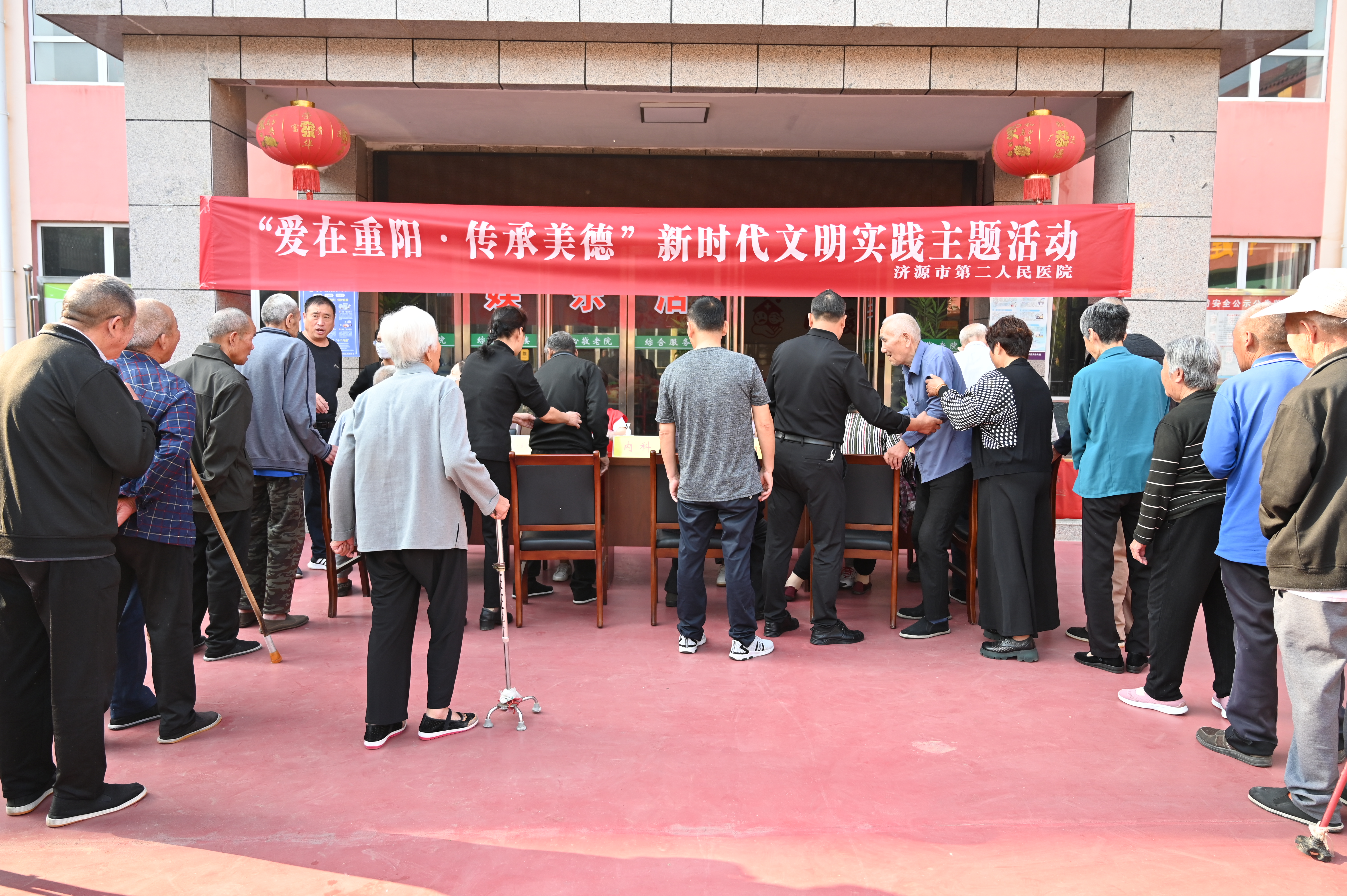 岁岁重阳,今又重阳。重阳佳节将至,为大力弘扬中华民族尊老敬老的传统美德,进一步倡导爱老助老新风尚,9月28日上午,济源市第二人民医院志愿服务队到爱心敬老院开展“爱在重阳·传承美德”新时代文明实践主题活动,为老年人送上健康大餐。