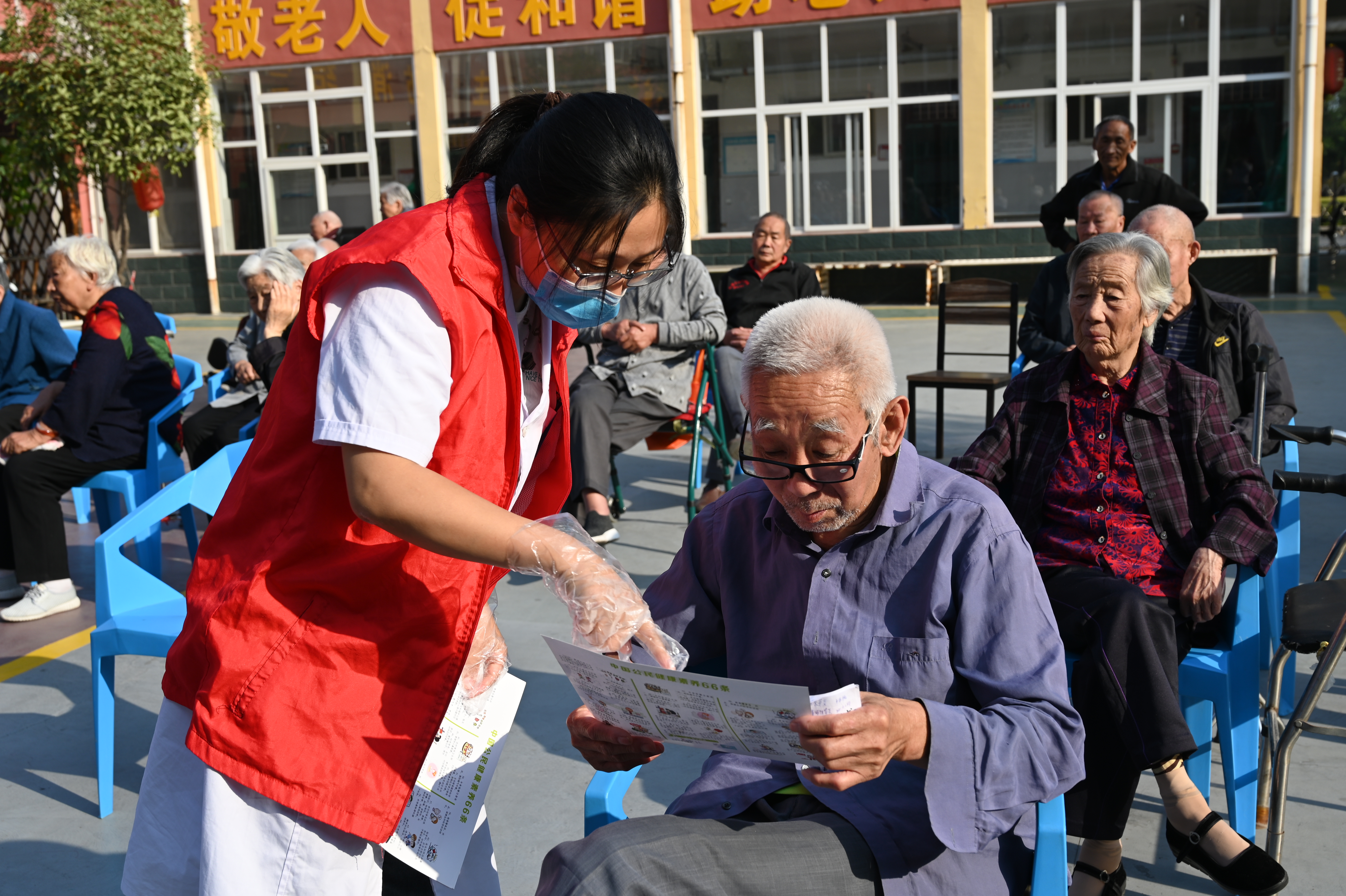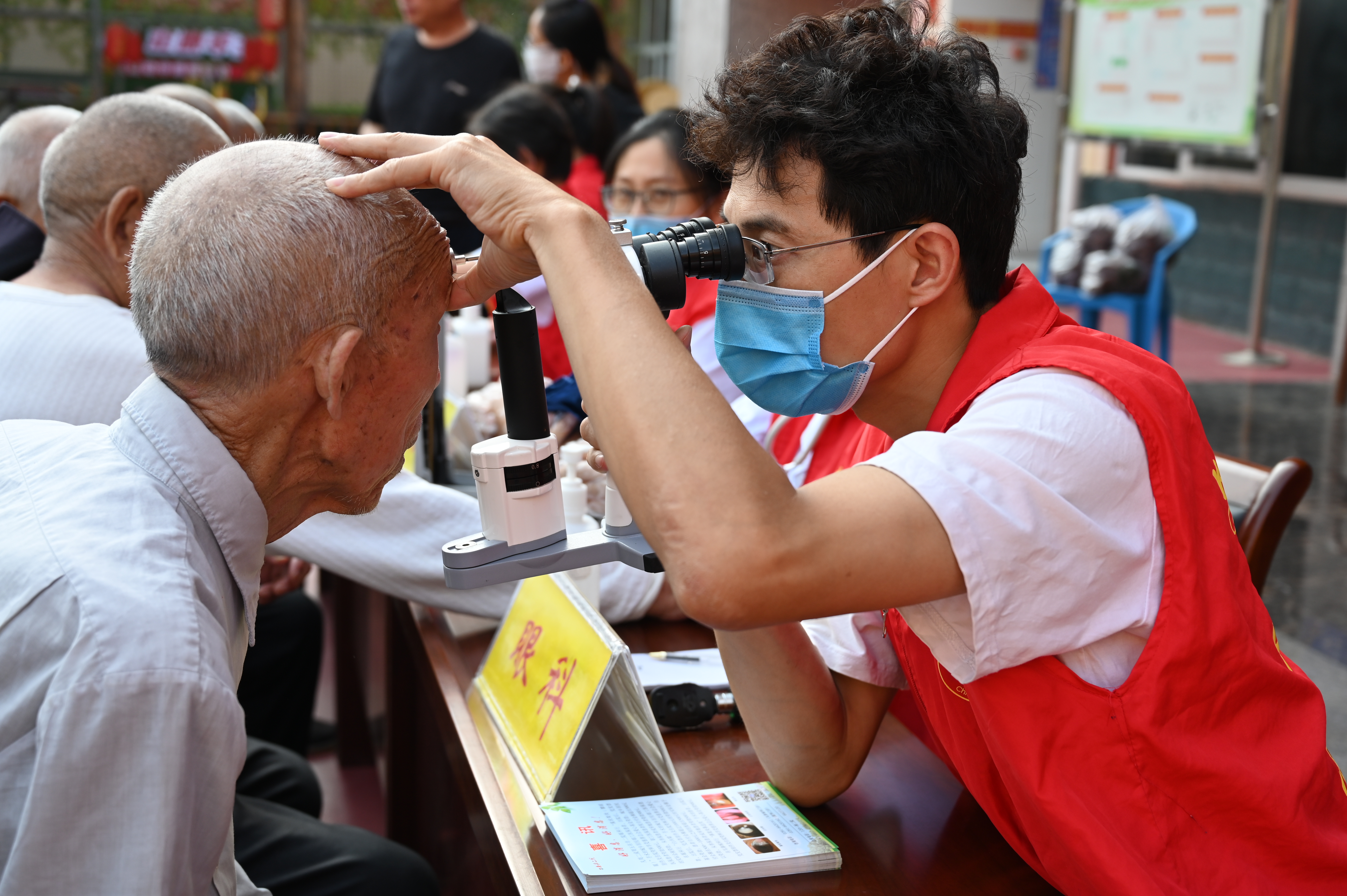 还有一些老年人视力不好,眼科主任郭艳波一一倾听他们的症状,并进行详细检查,为每位老人提供后续治疗方案。有位老人曾在我院进行白内障手术,术后效果非常好,虽然已是八十岁高龄,仍然能看清楚书上的字,他还让郭艳波再次检查眼睛,整体状况良好。心血管内科医生马玉侠、内科医生何雅静分别为老年人进行问诊、查体,针对不适情况开出健康药方,并为老人发放健康知识宣传页。