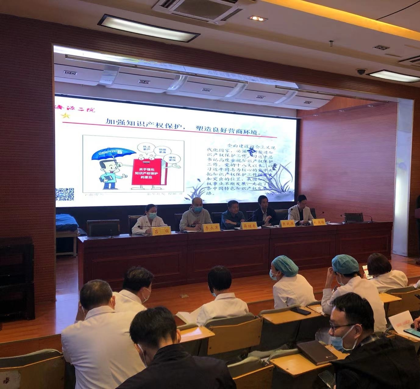 加强知识产权保护,塑造良好营商环境,为进一步增强医务人员依法从业意识,提升全社会尊重和保护知识产权意识,10月17日,我院在多媒体教室组织召开学习《知识产权保护法》专题法制培训会议,班子成员、党员干部90人参加了这次培训。分管人事工作的主管领导胡国栋主持。