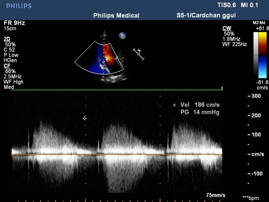 超声提示:1:右冠状动脉左室瘘 2:右冠状动脉迂曲扩张 3:二尖瓣、三尖瓣、主动脉瓣少量返流 4:左室舒张功能减退