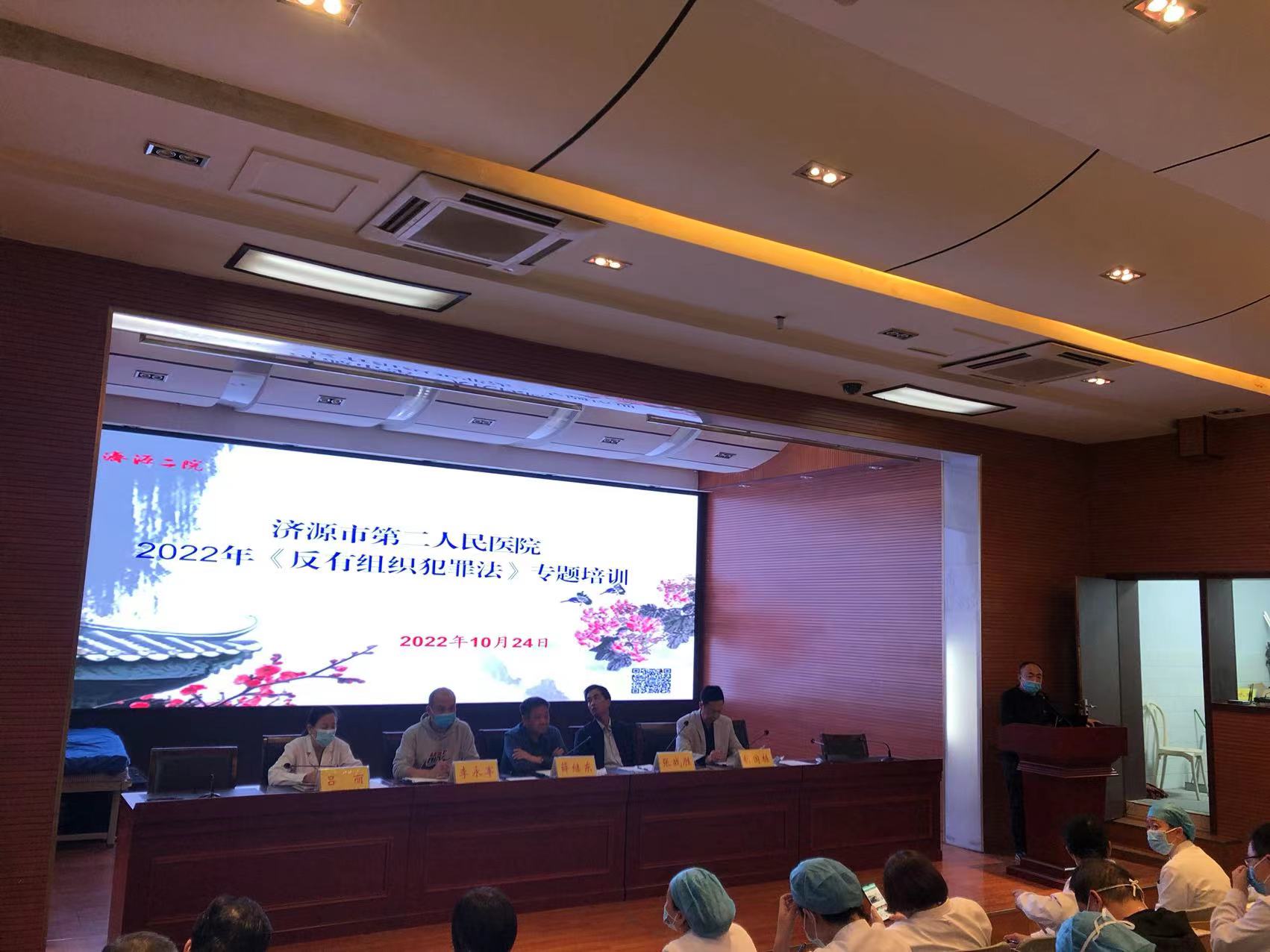 为进一步加强《反有组织犯罪法》宣传力度,持续深化扫黑除恶工作,营造广大职工和群众参与反有组织犯罪工作的浓厚氛围,10月24日,院领导及中层干部等90人在多媒体教室召开2022年法治宣传教育专题会议,集中开展学习《反有组织犯罪法》专题培训。党总支纪检委员胡国栋主持。