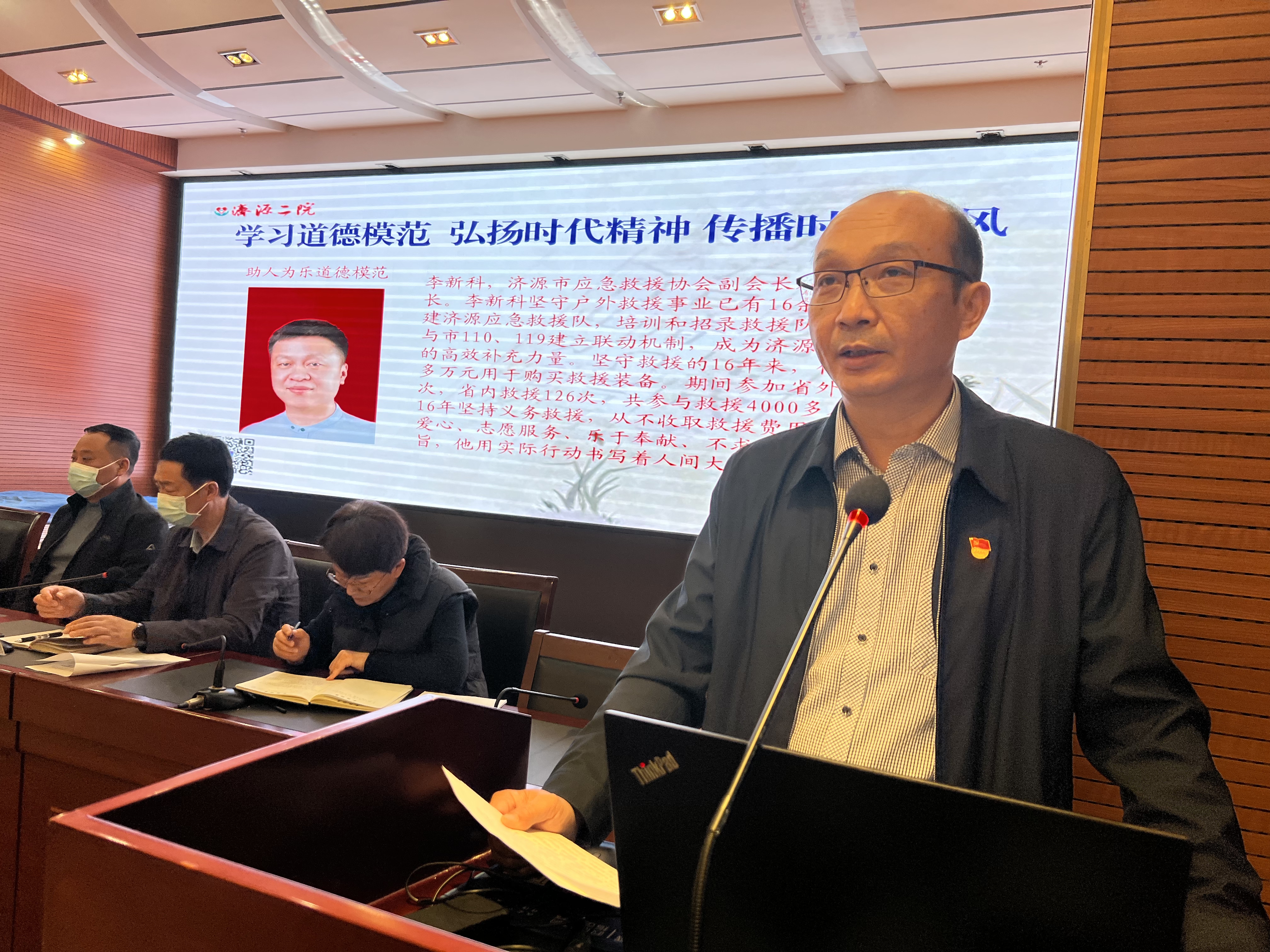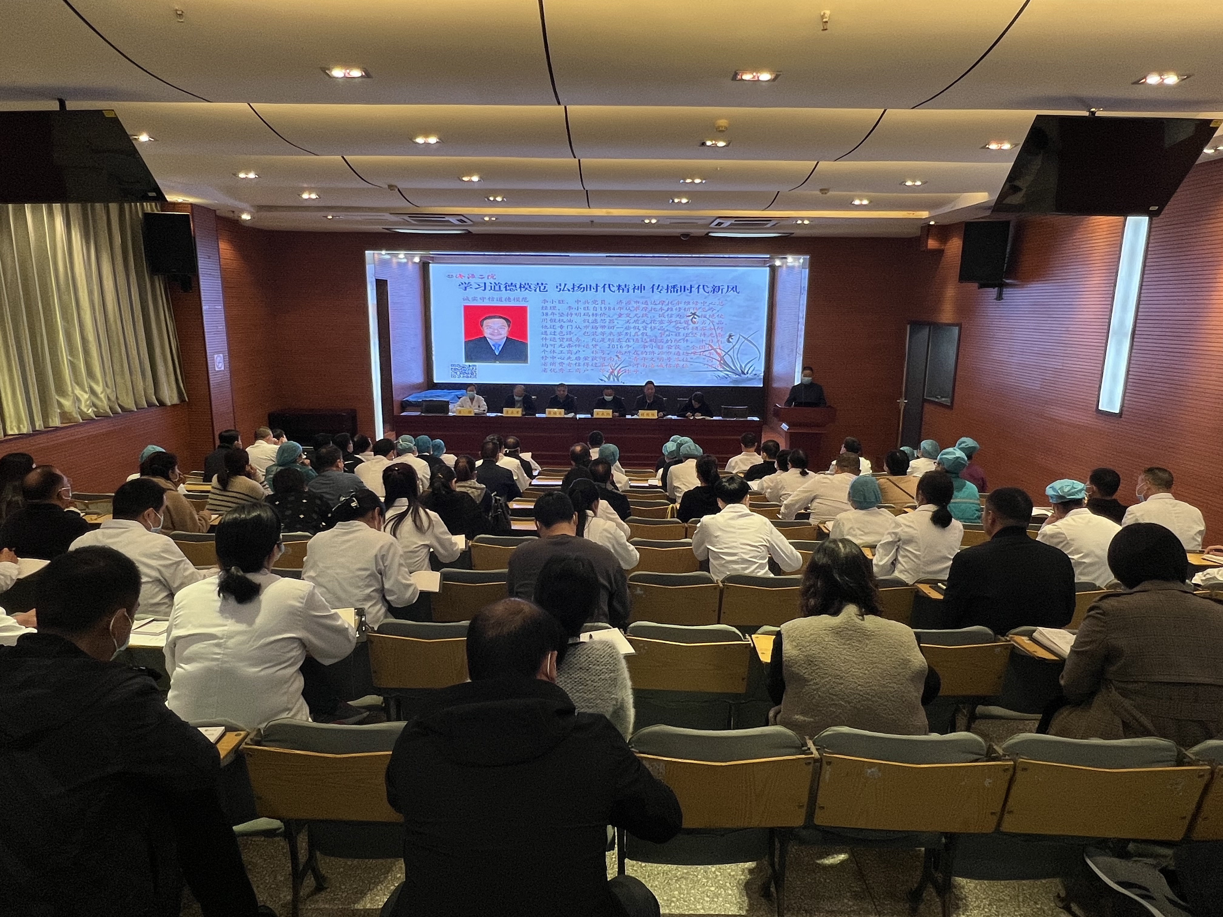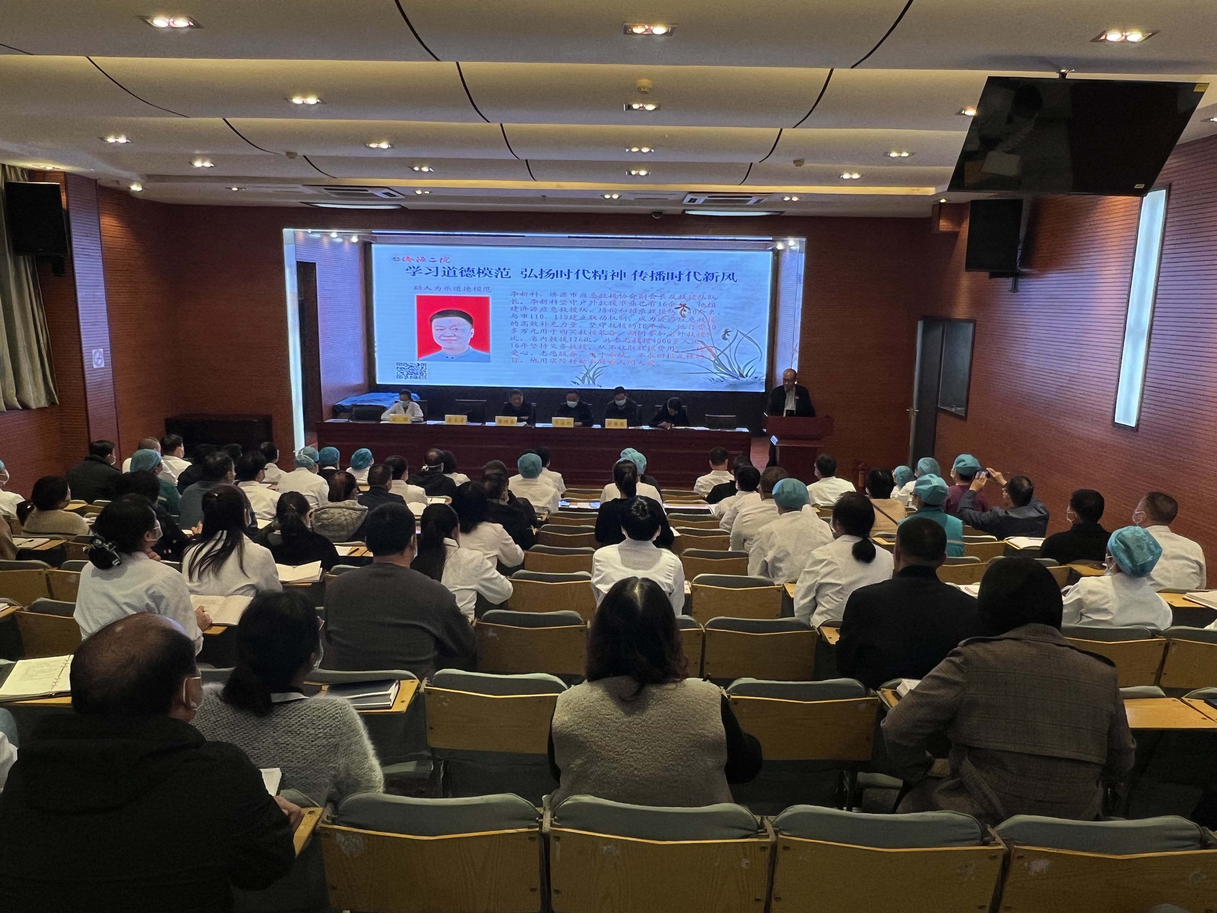 为持续推进学习道德模范事迹,大力弘扬道德模范精神,进一步弘扬积极向上正能量,充分发挥道德先进典型的示范引领作用,在全社会形成崇德向善的良好风气,11月8日,济源市第二人民医院组织中层干部在多媒体教室学习第六届道德模范先进事迹。