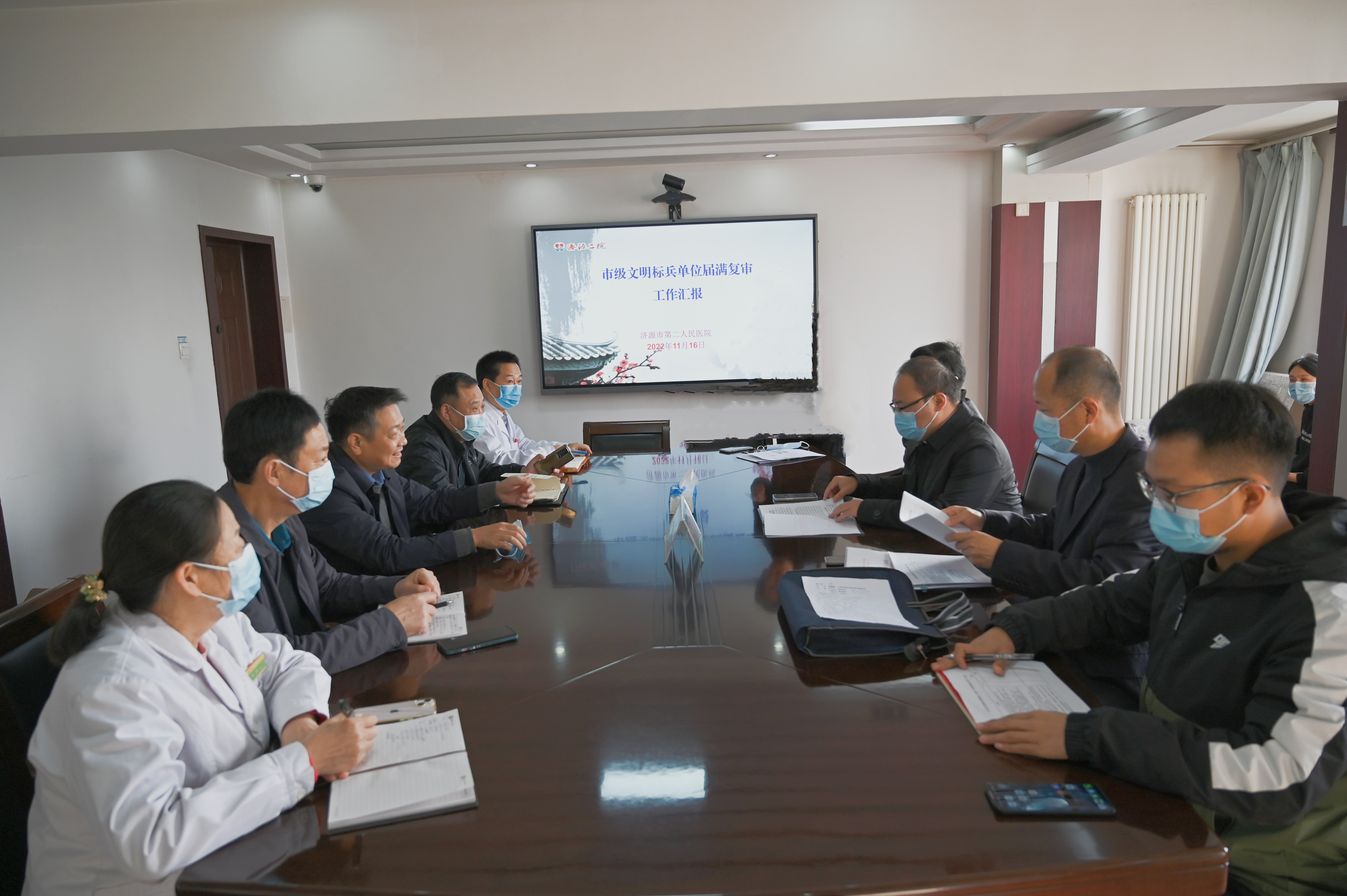 办公室主任杨红对医院文明单位创建工作进行详细汇报。她从党建引领、文化建设、医院形象、创建活动、志愿服务、新冠肺炎疫情防控等方面阐述了我院创建文明单位工作开展的具体情况。文明单位的创建工作是医院综合发展的重要指标,也是医院医疗水平和服务能力提升的具体体现,更是医院文化建设的重要成果。