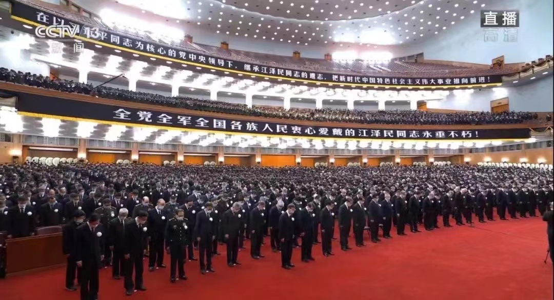 12月6日上午10时,党中央、全国人大常委会、国务院、全国政协、中央军委在北京人民大会堂隆重举行江泽民同志追悼大会。