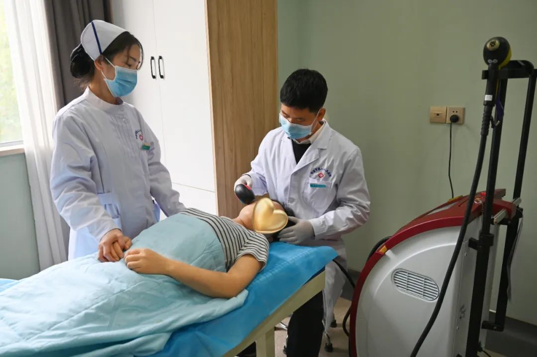 2021年秋,薛院长运筹帷幄,高瞻远瞩,看准市场需求,一直致力于为科室发展和科室成员搭建发挥才干的平台,指示我们在皮肤科基础上筹建医疗美容科,批准了环境优美的金水湾病区10间治疗室,逐步引进了二氧化碳激光治疗仪、强脉冲光治疗仪、以色列进口的黄金热拉提2.0、半导体激光脱毛仪、水光仪等,治疗项目得到空前提升,面部提升、光子嫩肤、脱毛、纹眉、祛疤、祛痘坑、水光注射、玻尿酸填充、肉毒素去皱等项目吸引了大批爱美人士慕名而来,舒适的环境和精湛的技术给求美者带来舒心的体验,每日的治疗络绎不绝,仅半年时间,治疗费高达130多万元。