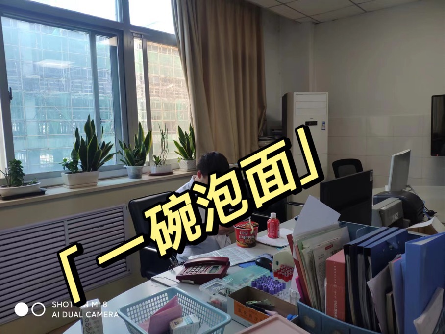 在这期间也有许多感动我的小瞬间,保洁大姐在我们中午加班的时候悄悄的为我们买了午餐,让小伙伴们在一点半的时候吃上了热腾腾的饭菜,狼吞虎咽虽然狼狈但很满足。肾友从家里给我们送来酒精和口罩,让我们在冷冬里有了暖暖的感动。微信群里大家互相加油打气,面对加班,大家争先恐后。在CCU里,洪弟的一碗泡面诉说着他的疲惫与坚守。夜晚蒋主任每两个小时接到重症患者的检验结果并迅速调整治疗方案,日夜兼程的付出彰显着“老夫聊发少年狂”的奋进!为我们这群人点赞!