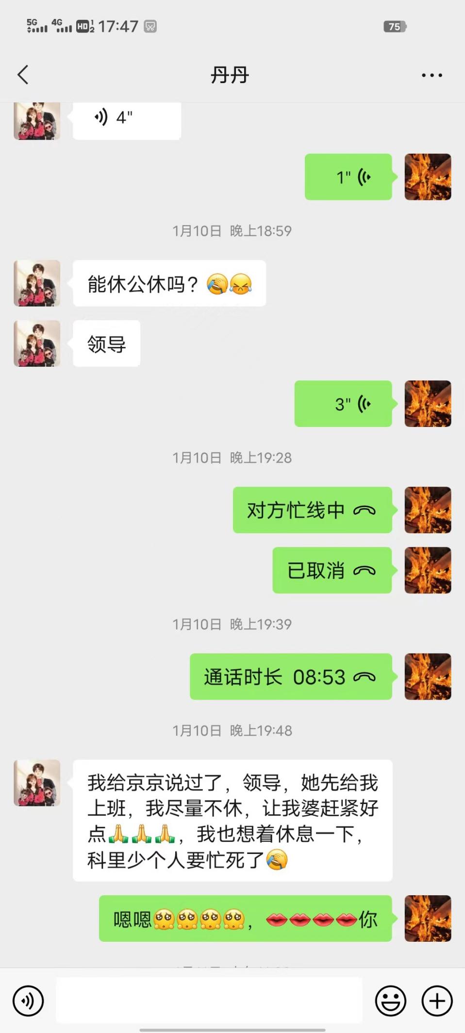 科室的人员现在都紧张,更不用说有一个人请假了。各科也都是这种情况,病人都人满为患,护理部肯定也增援不了。想想,我们科室刚开始感染新冠病毒的时候,人员陆陆续续都阳性了,护士11个人,到最后只有5个人上班了。后来丹丹也阳了,发烧到39.6度,一吃退烧药,感觉有力气了,她一天假都没休息,继续穿着厚厚的防护服坚持上班。现在,她这样问我,我估计是家里有事,实在是没办法了,才这样问我吧。