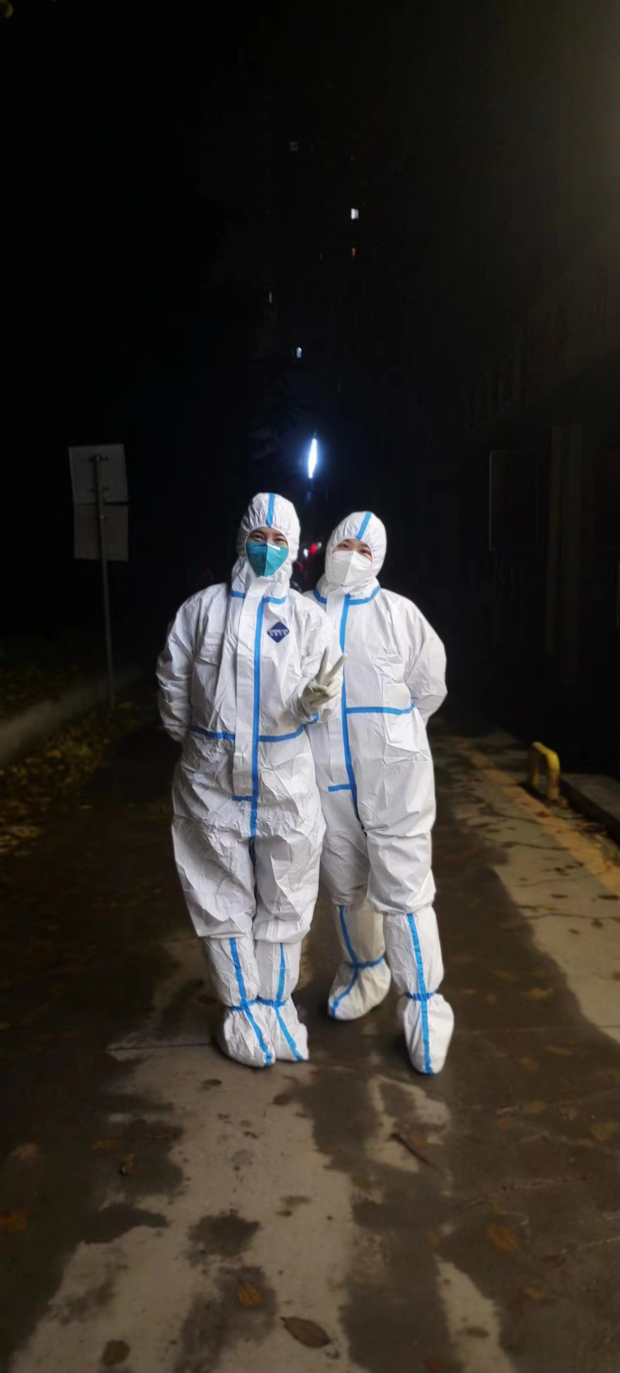 密不透风的防护服、不太透气的N95、爬不完的楼梯、反复走的路……我们在分工和合作中完成了每天的采样任务,有疲惫,但更多的是自豪!