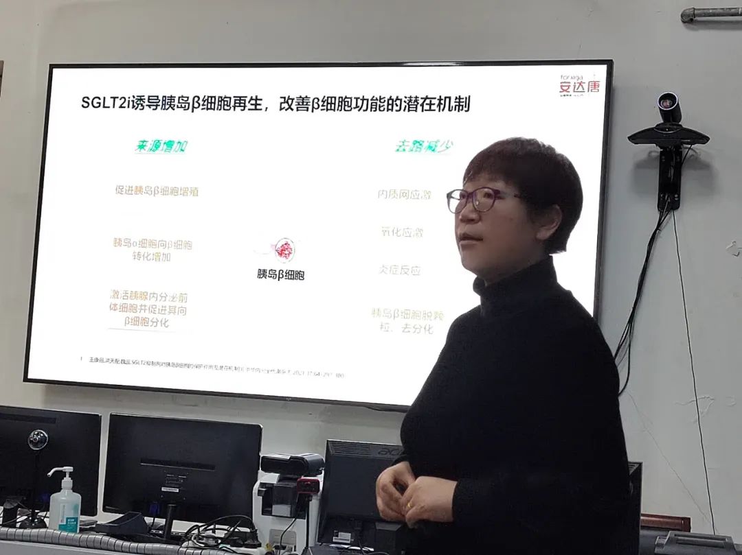 鲁平主任擅长内分泌代谢疾病诊疗,尤其在糖尿病及其并发症等方面的治疗有独特的造诣。她凭借多年的临床经验,以《直击靶点,指南推荐——安达唐是胰岛素联合治疗的优选》为主题,就糖尿病的现状、为什么要治疗糖尿病、糖尿病的诊断标准、治疗糖尿病的药物及胰岛素强化治疗等内容,结合医疗发展现状进行详细讲解。她强调,安达唐是胰岛素联合治疗的优选切入点,从SGLT2过度表达是T2M高血糖的重要原因;安达唐与胰岛素机制互补,改善β细胞功能;安达唐强效排糖,心肾双护,指南推荐优选三个方面重点阐述。