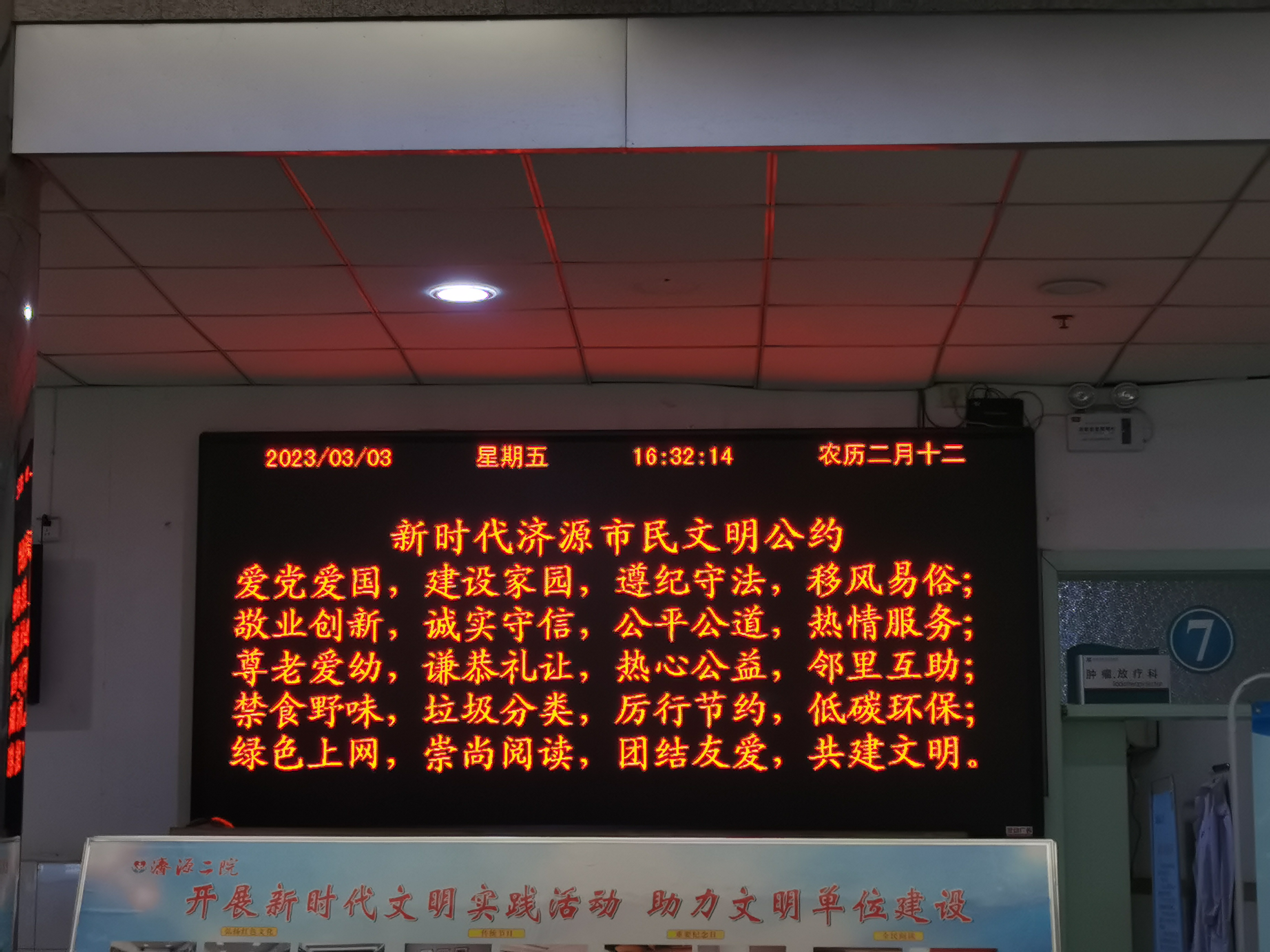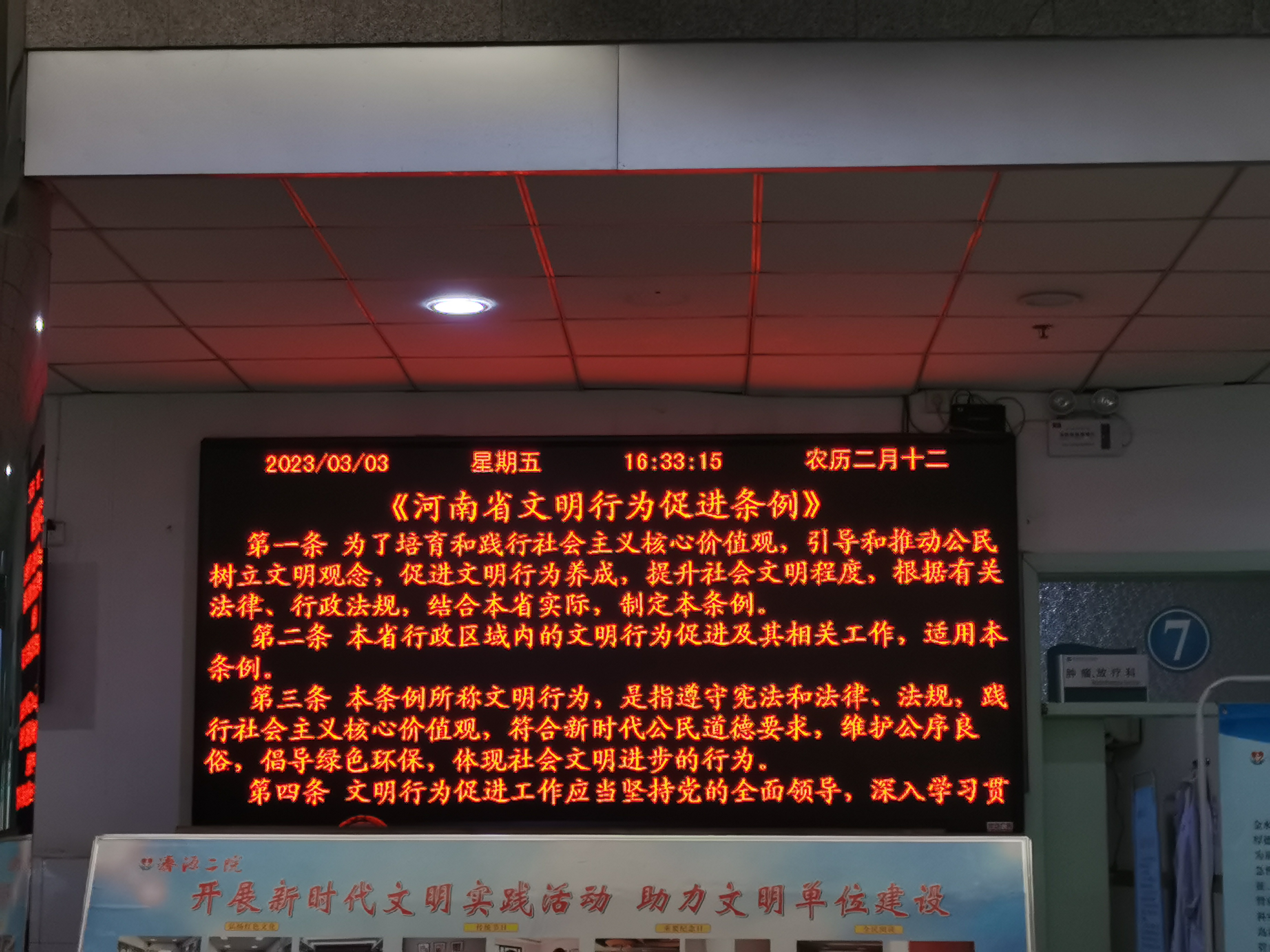 同时,医院结合多种形式开展《条例》宣传。在医院门诊大厅的电子显示屏滚动播放《条例》内容,在医院官方微信上同步发送《条例》全文,营造良好、浓厚的宣传氛围。