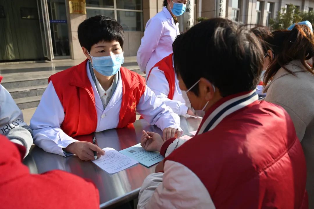 早上八点半,志愿者们到达大峪卫生院,前来问诊的村民早已排好了队等待。于是,医护人员立即投入义诊工作。