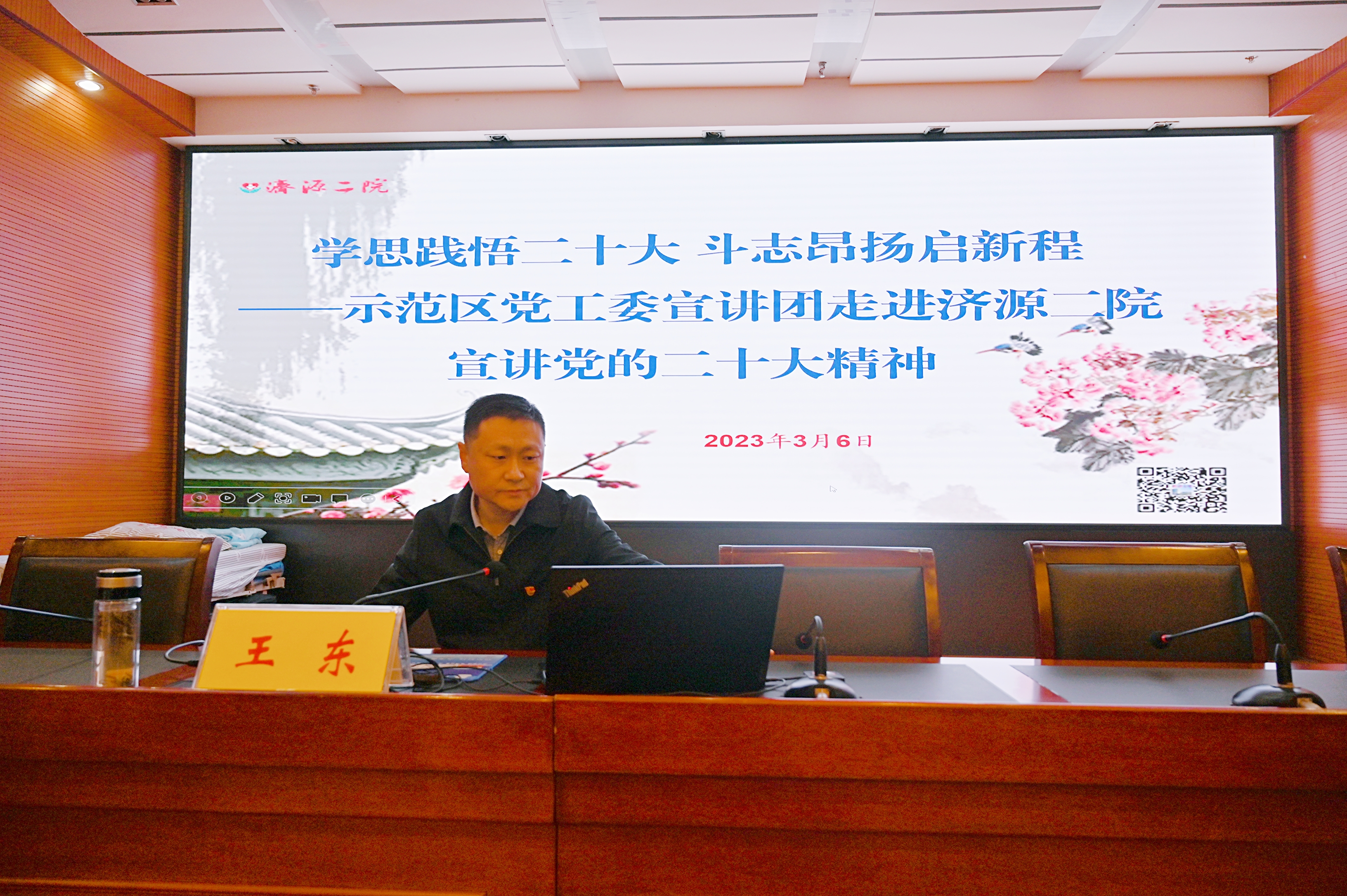 为深入学习贯彻党的二十大会议精神,进一步引导我院党员干部学深悟透,3月6日下午,我院开展“学思践悟二十大 斗志昂扬启新程——示范区党工委宣讲团走进济源二院宣讲党的二十大精神”宣讲活动。