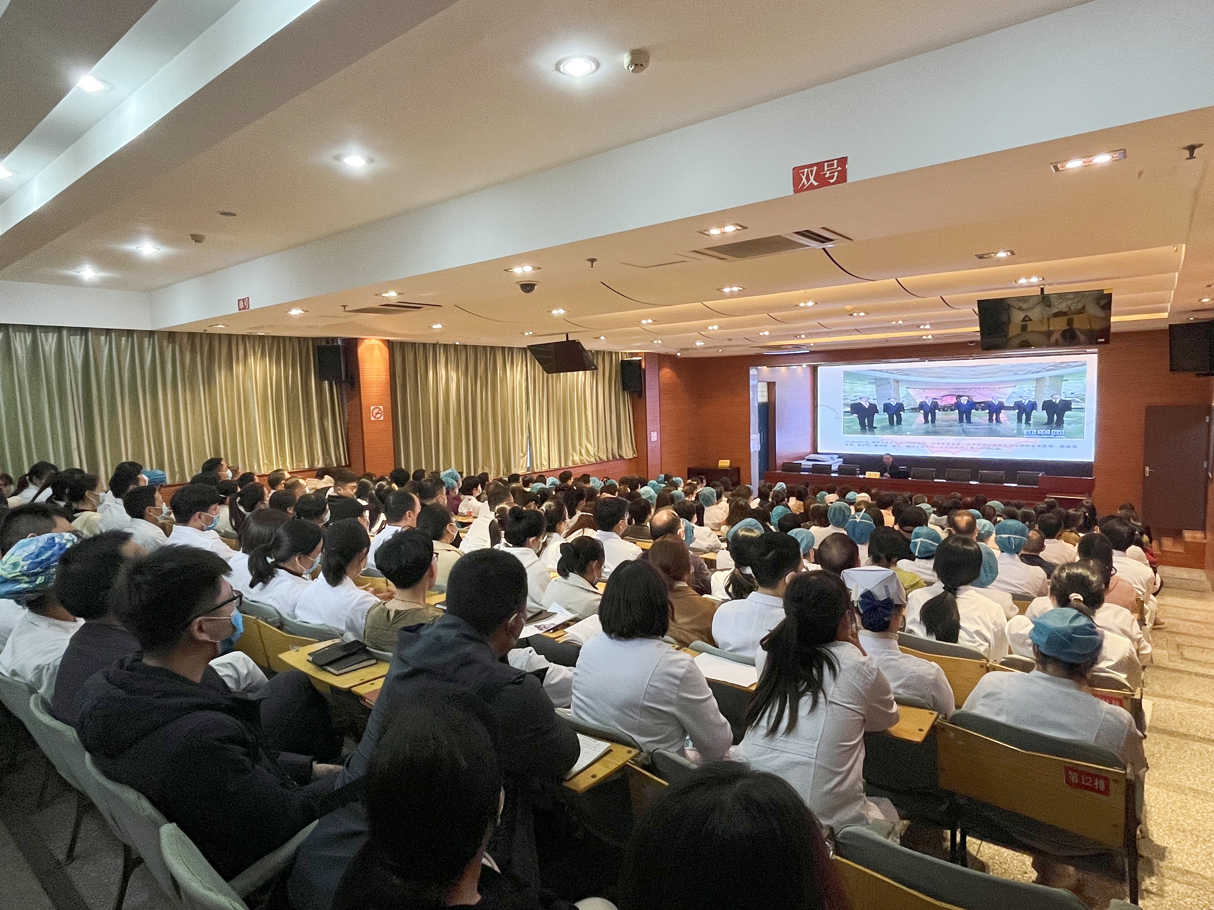 副书记任海燕主持宣讲活动。全院干部职工近三百余人到场聆听。