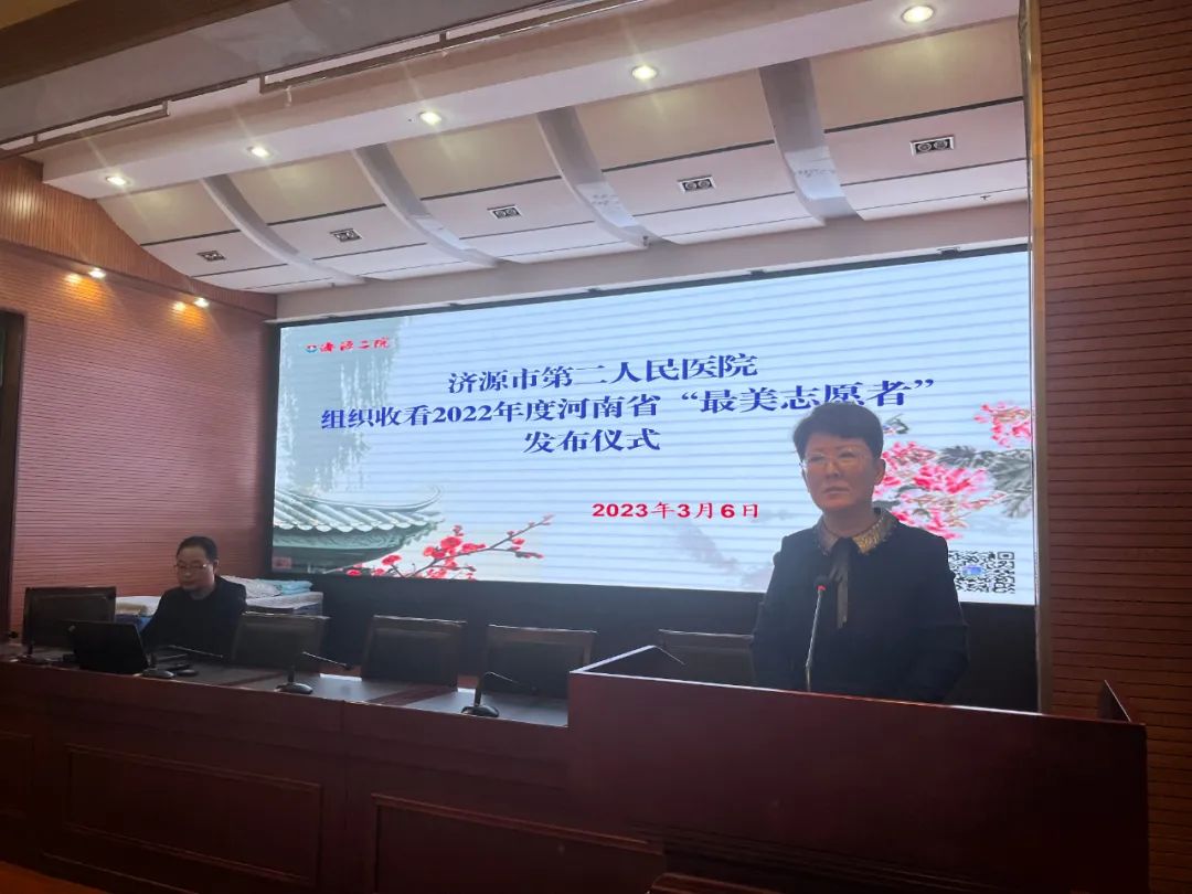 此次活动组织者办公室主任杨红表示:根据市文明办要求,组织我院干部职工集中观看2022年度河南省“最美志愿者”发布仪式及先进事迹,旨在通过学习、宣传,营造全社会学习先进、争当先进的浓厚氛围。另外我院将通过官方微信、电子显示屏、医院职工微信群等媒介,组织观看、学习,加强宣传,积极传播“奉献、友爱、互助、进步”的志愿者精神,争做最美志愿者。