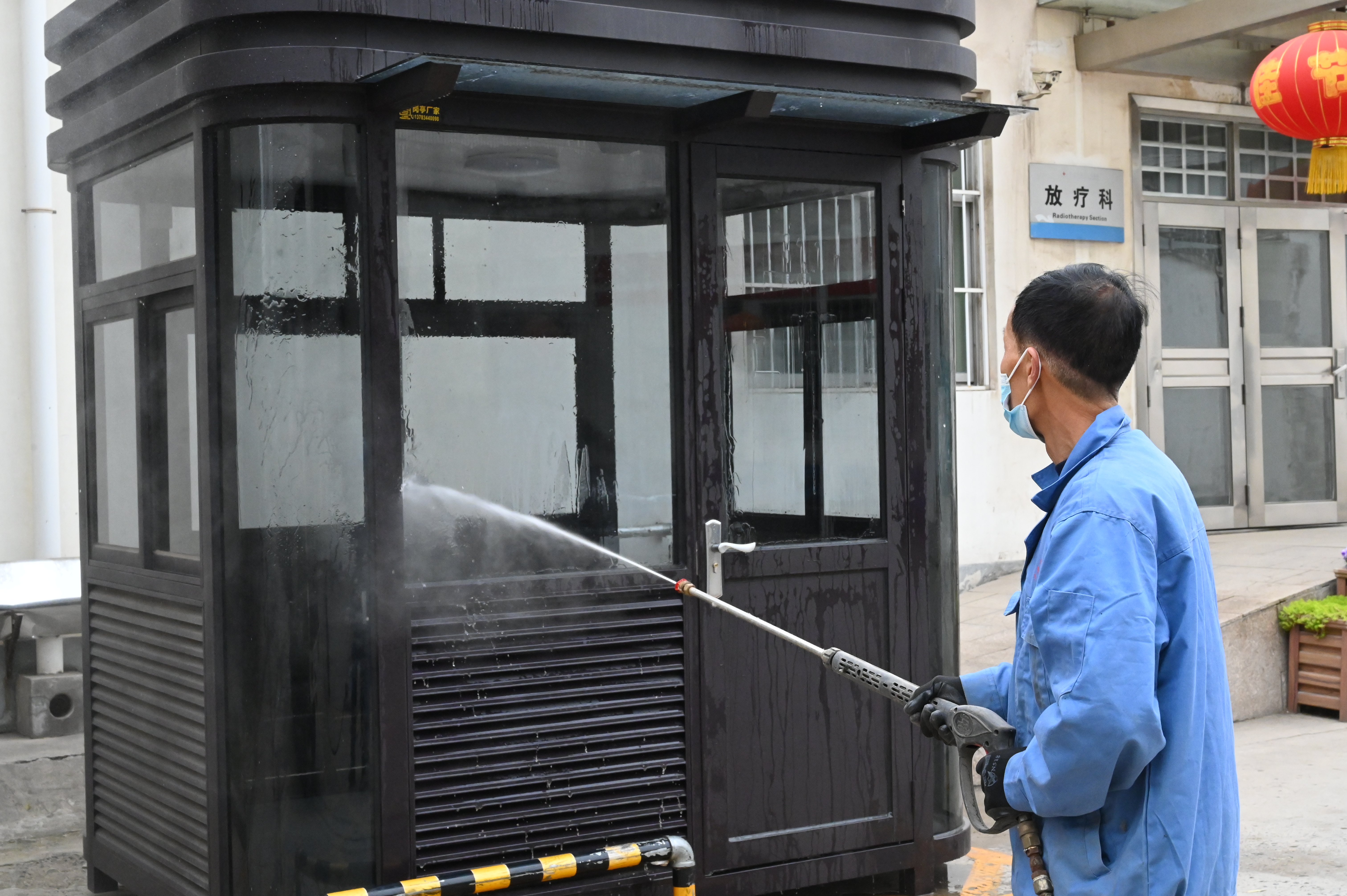 院区内窗户、墙面及空调外机等公共区域经历了几场风雨,都积攒了厚厚的灰尘,卫生员拿着高压水枪对这些地方进行了高压冲洗。院区所用的创建橱窗、路标、垃圾箱等也都经过了水的洗礼,特别是室内纱窗及一些容易忽视的卫生死角也都被冲洗的干干净净。在不影响院内行人的情况下还对全院路面进行了高压清洗,切实做到了整治一处,清洁一处,靓丽一处。