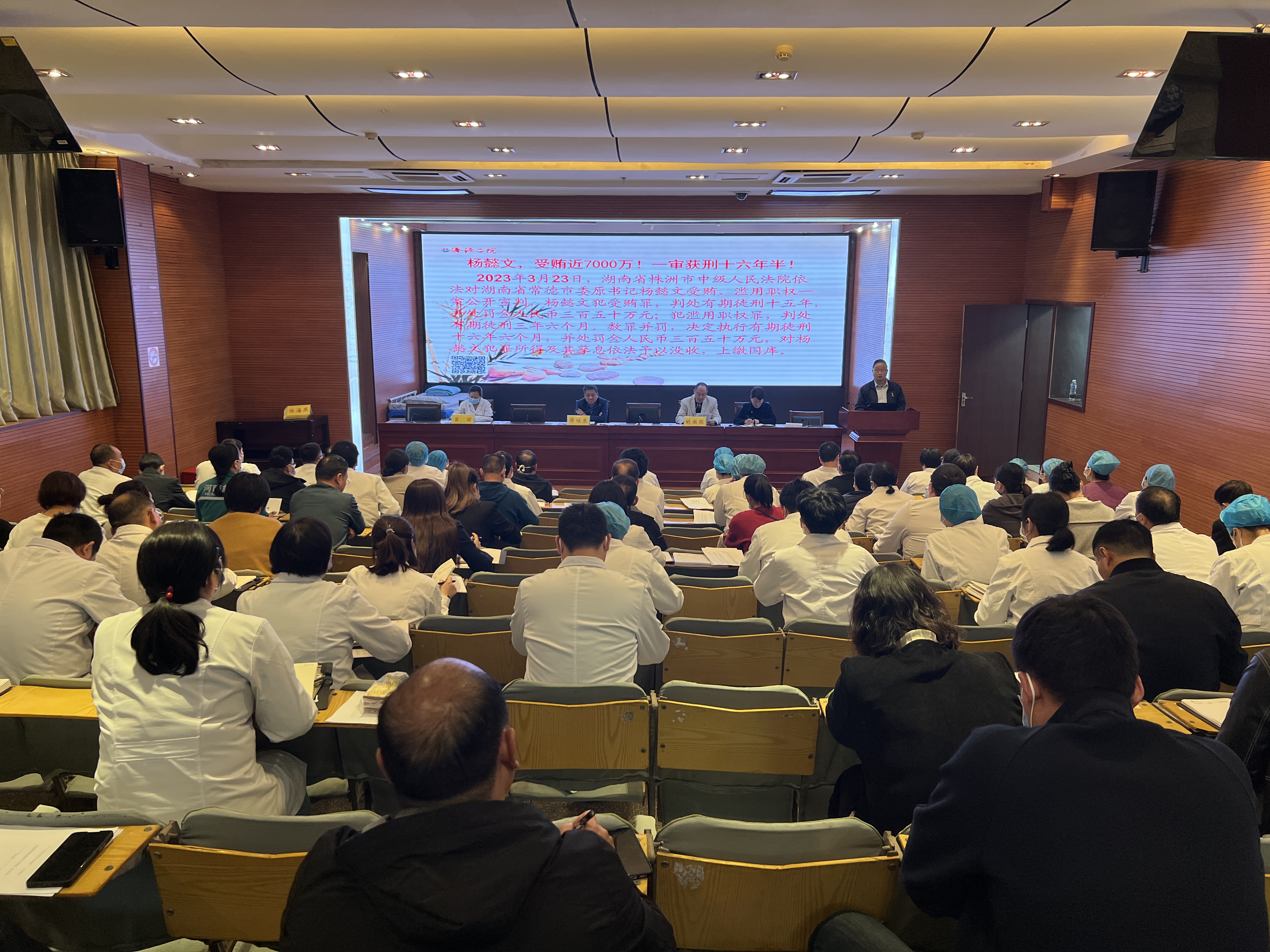 为认真学习贯彻党的二十大精神,推进清廉医院建设,严肃行业纪律规范,发挥警示教育作用,2023年3月27日,我院在多媒体教育召开清廉医院建设警示教育专题会议,院领导、各科室负责人80余人参加,卫健委党组成员、院长薛继东作总结讲话。党总支纪检委员胡国栋主持学习。