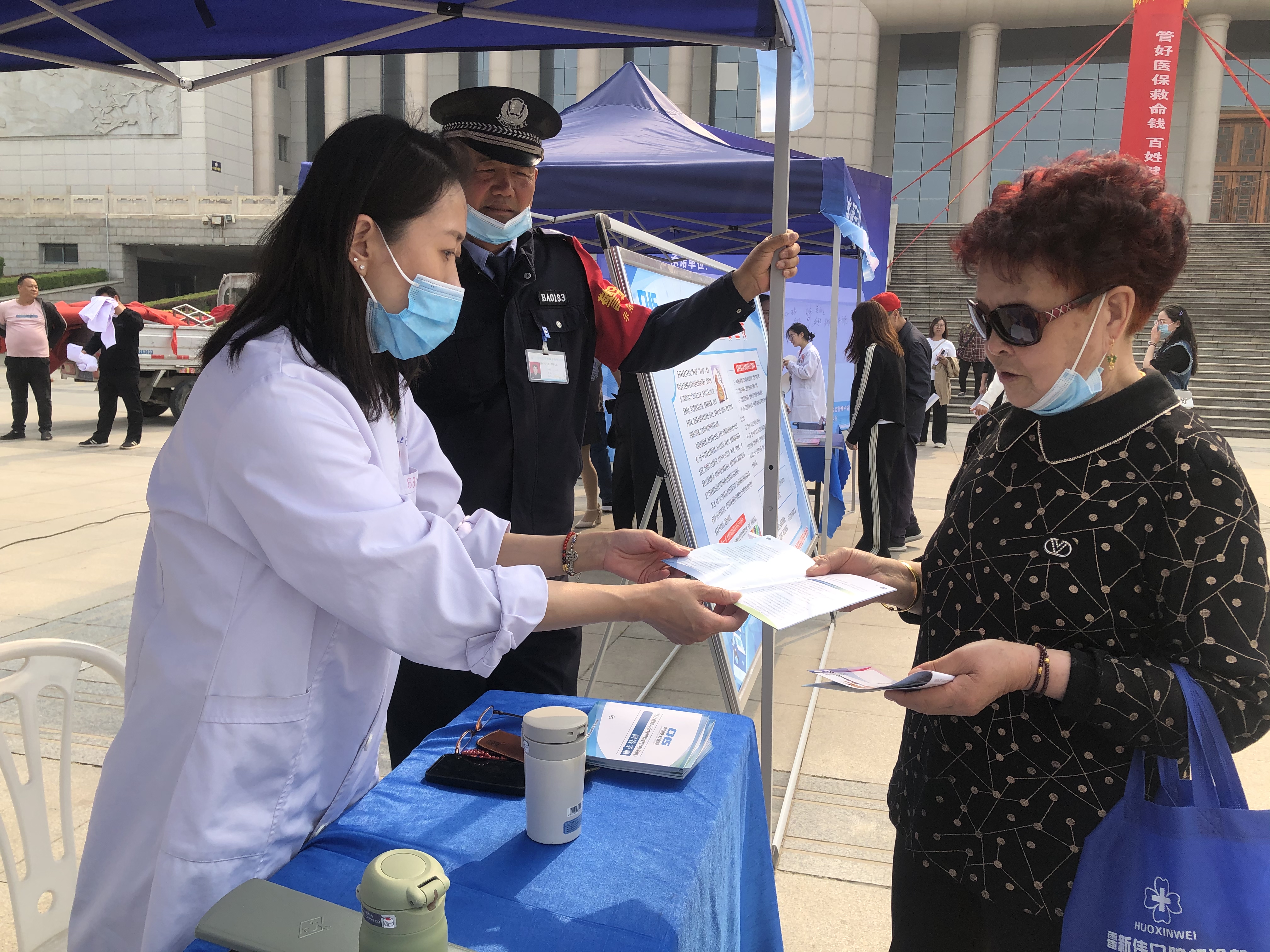 启动仪式结束后,现场进行了宣传活动,我院医务人员通过摆放展板、发放宣传资料及宣传品、现场解读等形式向广大群众宣传普及基本医疗保险、 医疗救助政策及医疗保障基金监管相关法律法规、曝光欺诈骗保案件。此次宣传义诊活动的开展,大大提高了人民群众对医保政策的知晓率,推动全社会参与打击欺诈骗保行为,共同维护医保基金安全。