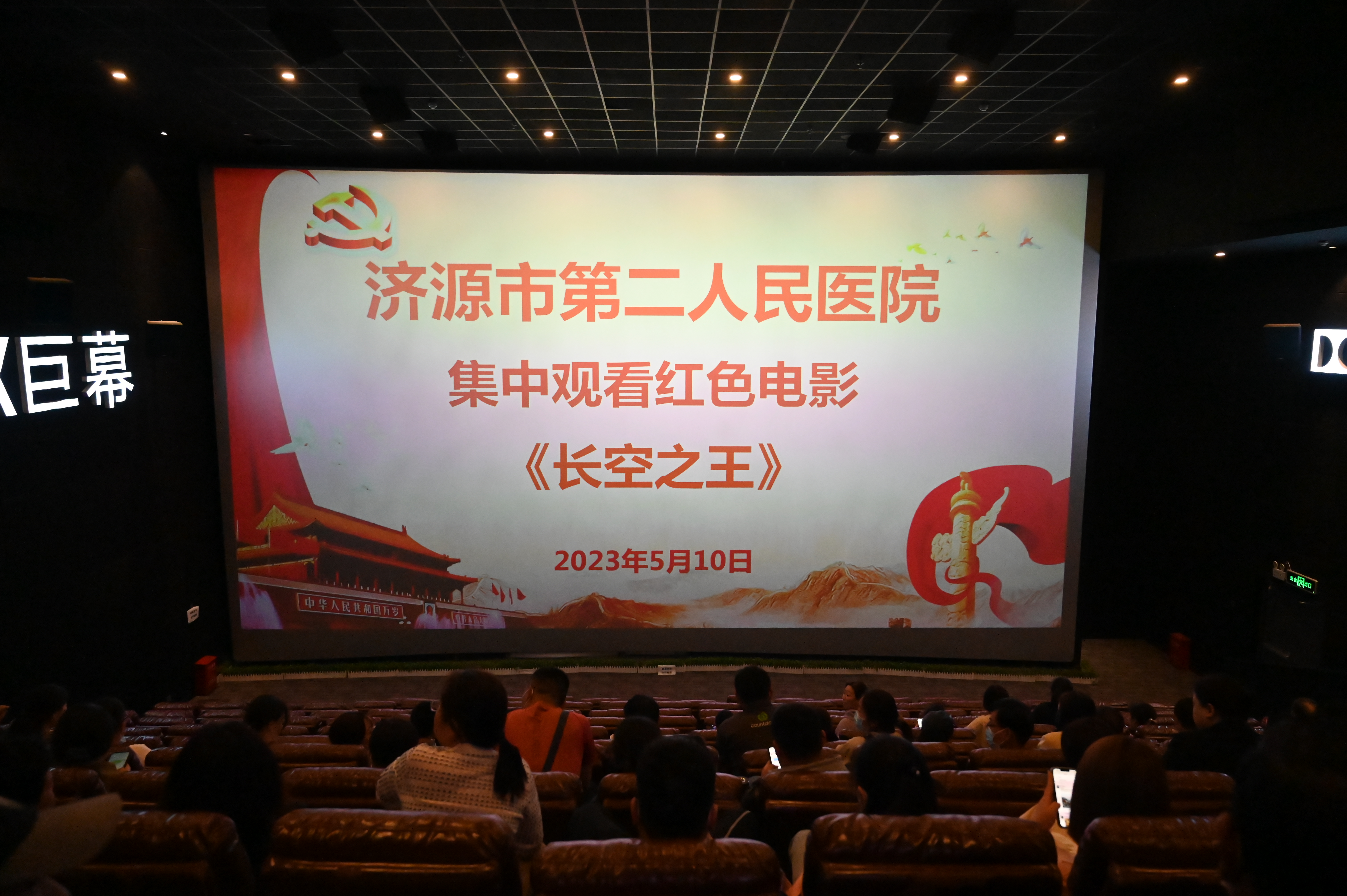 为进一步深化党史学习教育,弘扬爱国主义精神、拼搏精神、奉献精神,牢记党的宗旨,激励全院干部职工立足本职岗位、凝心聚力、干事创业的动力,全心全意为人民服务。5月10日、11日下午,济源二院分两批次组织干部职工集中观看红色电影《长空之王》。通过观影的方式创新党课形式,用光影艺术锤炼党性,凝心铸魂。