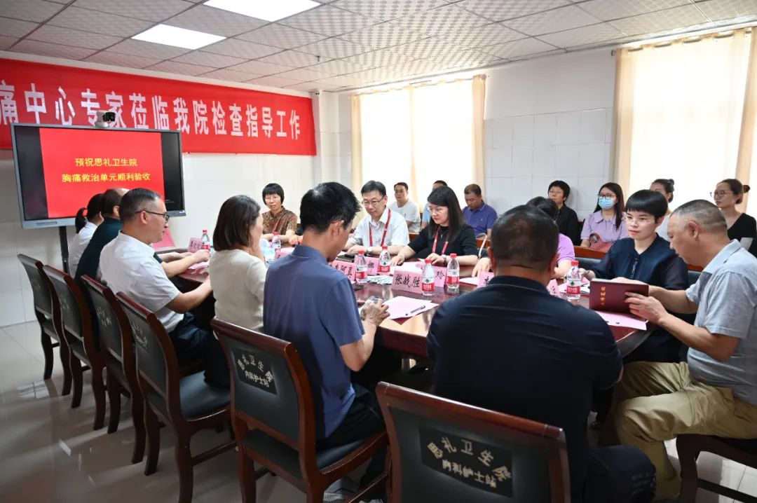 验收专家组由河南省胸痛中心联盟主席、阜外华中心血管病医院党委副书记、副院长高传玉教授,中国胸痛中心联盟办公室主任姬娜,济源市胸痛联盟主席、济源二院心内科主任薛瑞璐组成。 参加本次验收会的领导及嘉宾还有:示范区卫健委党组成员、副主任原亚洲,思礼镇副镇长李阿真,济源二院副书记、副院长张战胜,示范区卫健委医政科科长田小周及第二医疗健康集团各分院卫生院院长、医政科科长等。