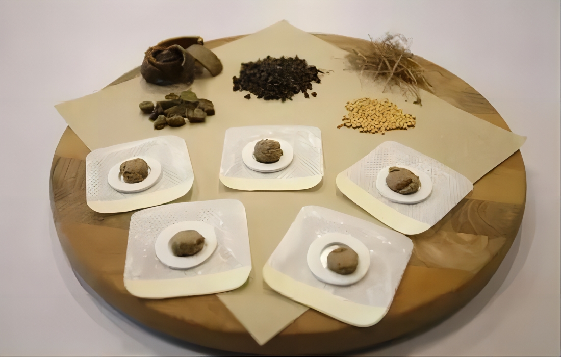 将辛温中药做成药贴,直接贴敷于特定穴位,刺激穴位,利用中医经络理论以达到振奋阳气、散寒祛湿、通经活络和通调气血的目的。