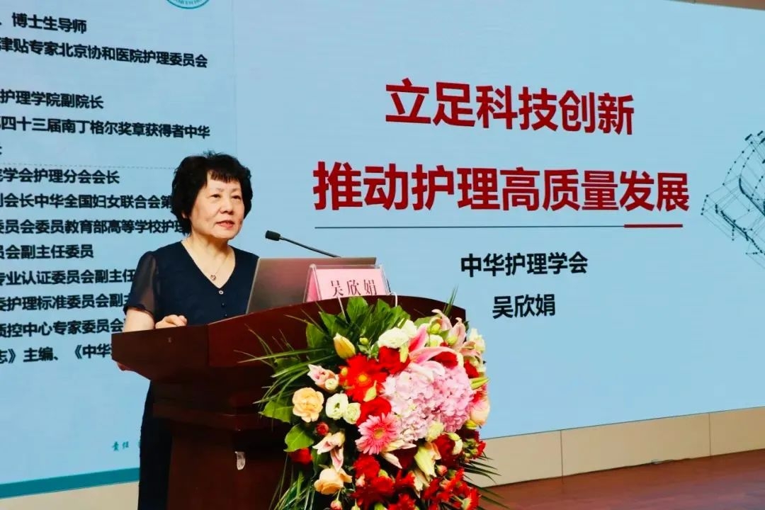 首先,中华护理学会理事长吴欣娟作题为《立足科技创新,推动护理高质量发展》的专题授课,强调培养创新人才,营造创新氛围,促进创新转化。她讲到科技发展从古到今,每一次都离不开创新。作为护理人员一定要有创新意识,在工作中,不断改进方法适应时代发展。