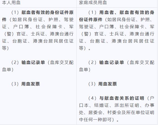 2.献血者家庭成员临床用血的,按献血量等量免费用血。
