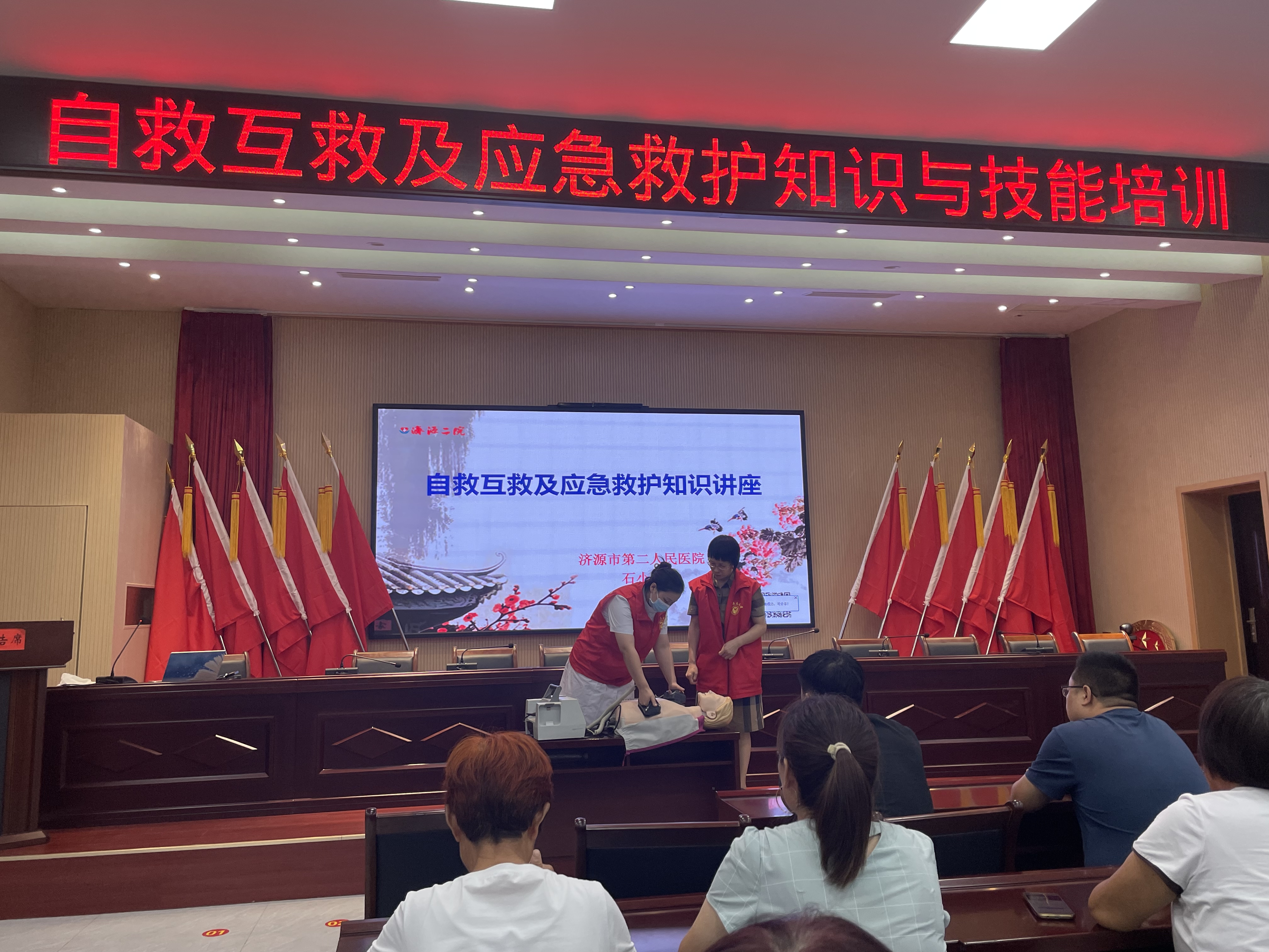 为普及应急救护知识,加强生命健康教育,进一步提升医护人员面对意外伤害的自救互救及应急救护能力,保障人民群众的生命安全和身体健康。8月17日,济源二院内一科副主任石小燕与护士张树姣走进下冶卫生院开展自救互救及应急救护知识与技能培训活动,活动现场共有下冶卫生院职工、村卫生室负责人60余人参加培训。