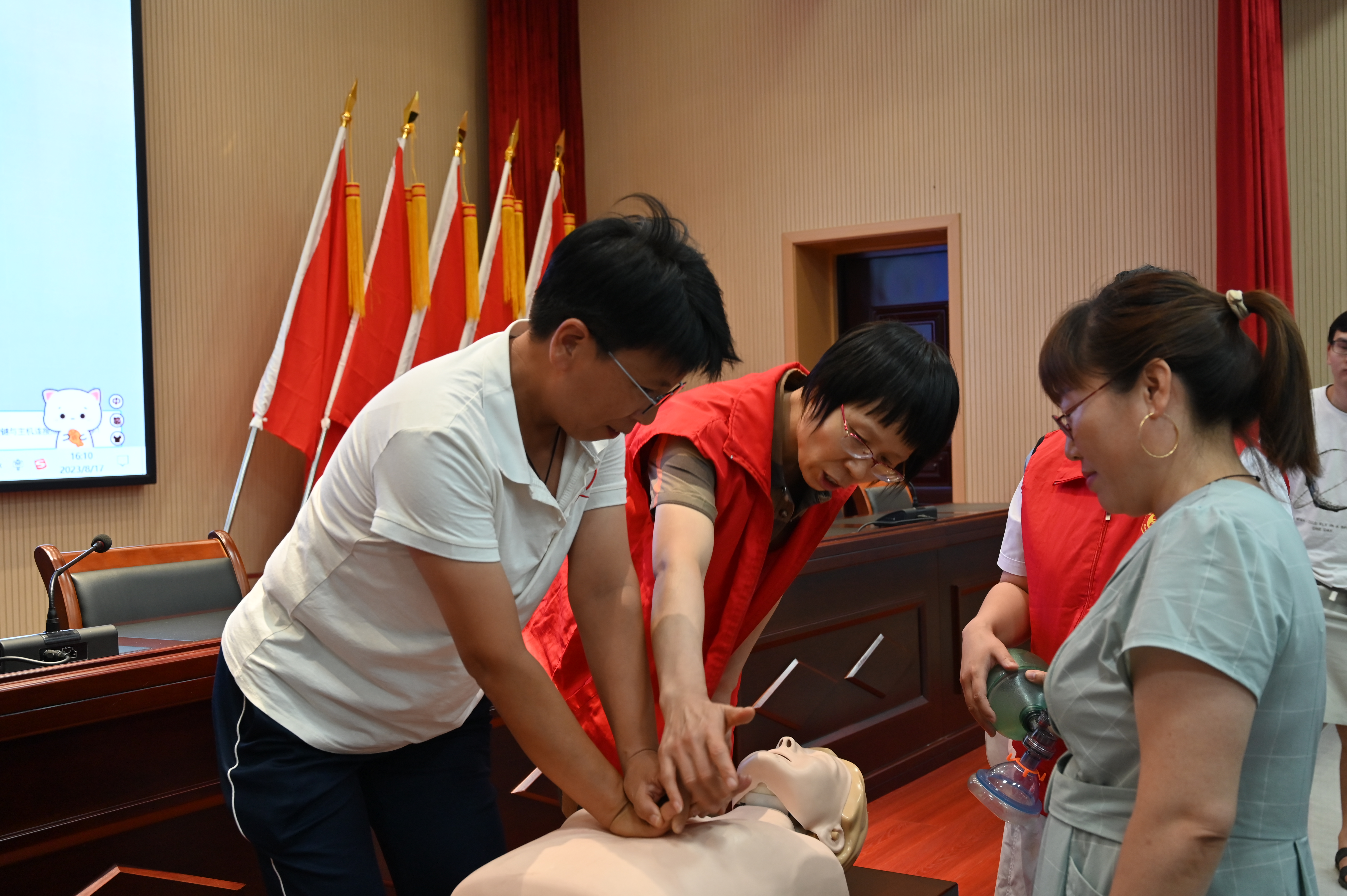 培训中大家听得十分认真,在操作练习环节争相上台体验,参与并进行实际模拟练习。实操演练中,石小燕一对一指导,提示要点,纠正错误动作,力求每一个动作标准、到位。通过实操演练,学员们更加系统直观地了解急救操作步骤和注意事项,掌握了急救知识与技能。在面对突发情况时能保护自己,也能救助他人。