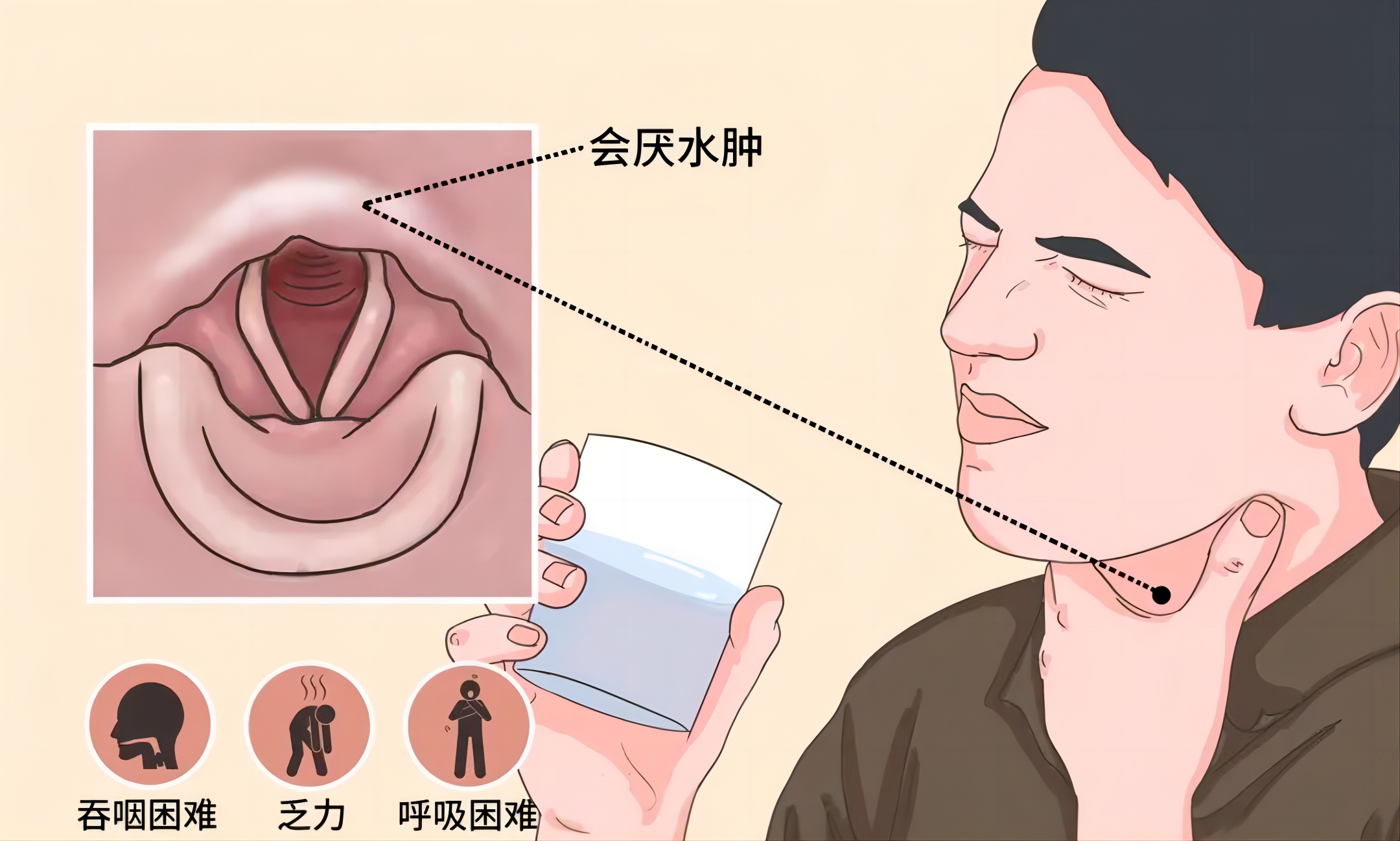 会厌组织结构比较疏松,容易在炎症刺激下发生肿胀。如果遭受细菌、病毒的侵犯,就可能引发较为凶险的急性会厌炎,导致呼吸道入口被阻塞,患者就会表现出呼吸困难,严重者喉气管入口会被完全阻塞,引起窒息。
