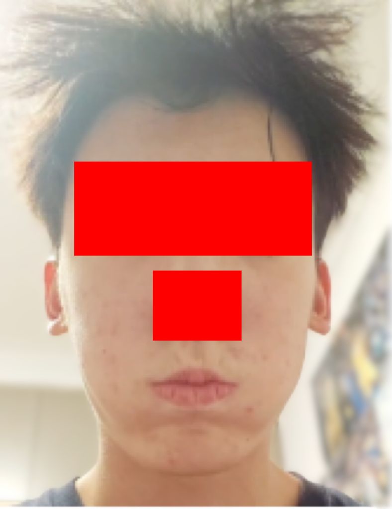 年仅18岁的李同学在外伤后出现了鼓腮漏气、额纹消失、眼睑不能闭合的情况,种种表现都像是面瘫,家人焦虑万分,生怕就诊不及时而留下后遗症,多方打听后,了解到济源二院康复医学科主任吕丽擅用肌筋膜触发点术干预面瘫,随即至我院康复医学科就诊。吕主任结合患者病史、全面检查体格后认定患者为典型的周围性面瘫。运用肌筋膜触发点术,结合普通针刺,在坚持一个疗程后,李同学可以正常地闭眼、抬眉毛、鼓气了,终于又恢复原来帅气的面容,重返校园。李同学和家人对我院康复医学科的全体医务人员表示非常感谢。以下为李同学面瘫前后对比图。面瘫时: