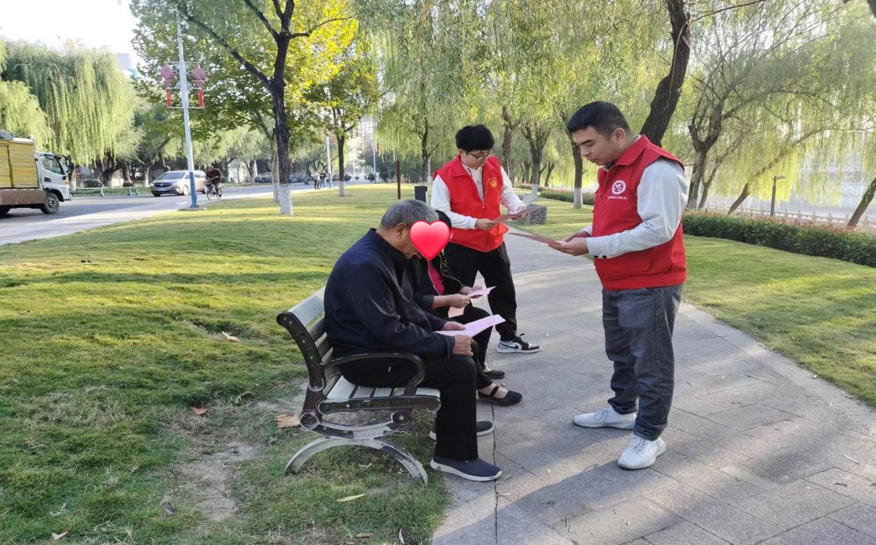 10月28日,志愿者们来到河边认真的向路过的行人发放“静音广场舞,规范暴走团、健步走”倡议书,并向他们讲解文明健身的重要性,引导他们在锻炼时注意活动场地的选择,降低音量设备或使用耳机,倡导大家争做良好社会秩序的拥护者、先行者、实践者、宣传者。广大群众对倡议内容十分赞同,并表示会积极遵守倡议书中的内容,积极践行文明规范的健身方式。