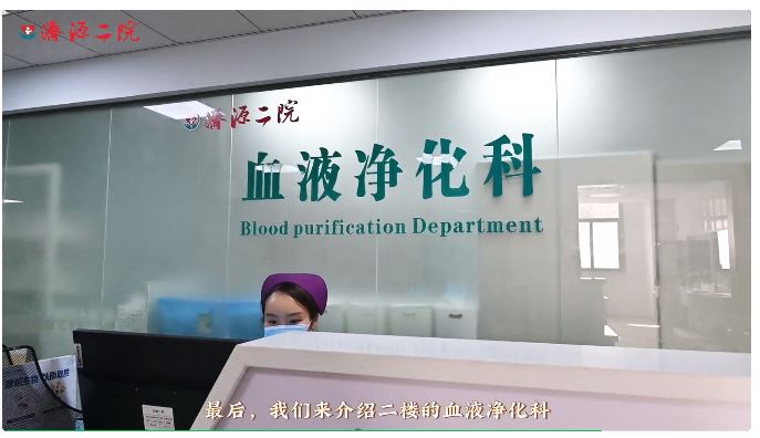 乘电梯下一楼,经过皮肤科诊室,坐电梯上二楼,出电梯的右手边,这里就是血液净化科,门口是家属等候区,再往前就是患者治疗区域。血液净化科是集血液透析治疗与通路手术建立和维护为一体的医疗科室,为我们肾衰透析患者提供专业的医疗技术。