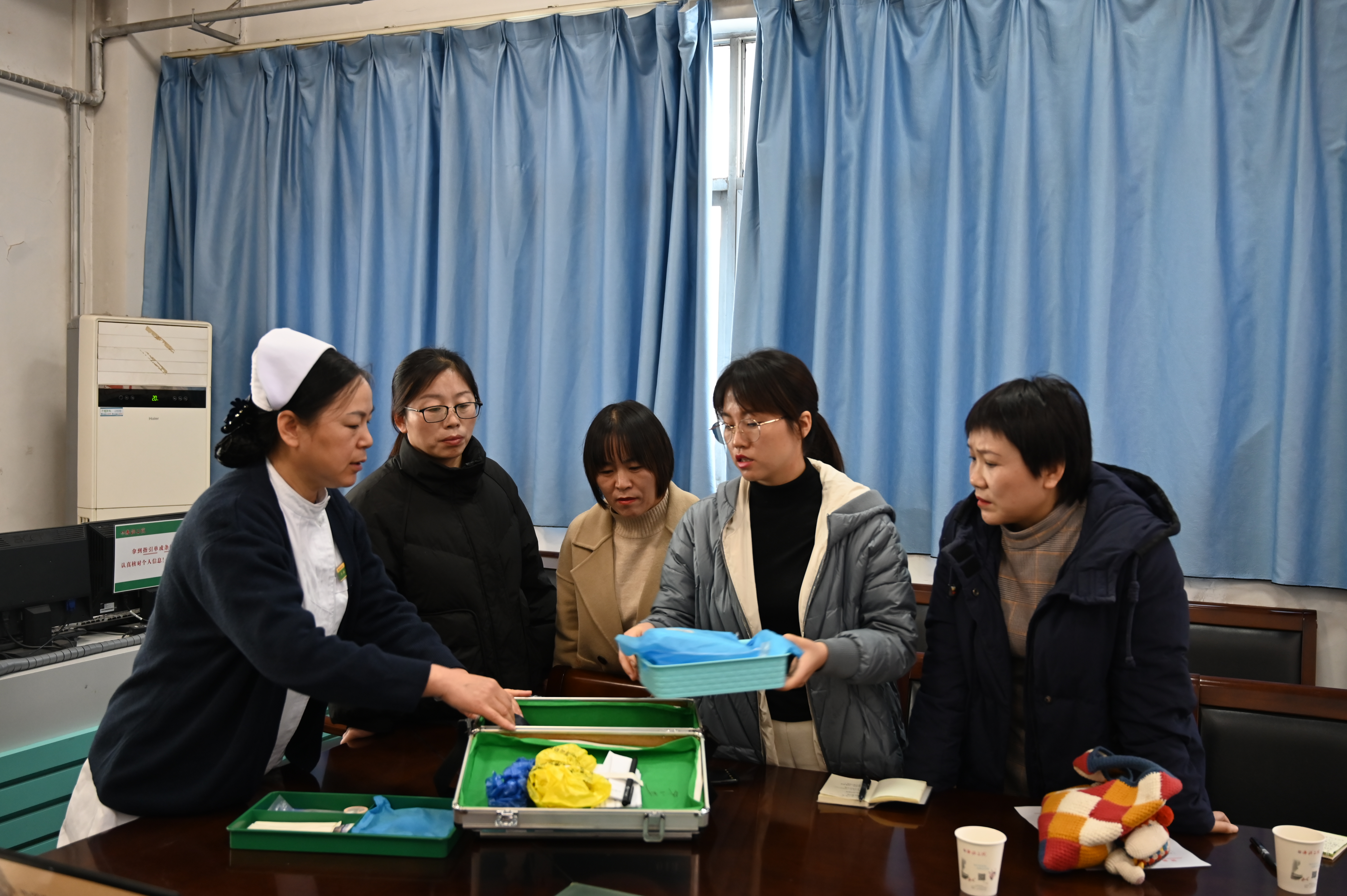 “护士到家”服务中,出诊箱是极其重要的服务工具。小小的出诊箱引起了大家浓厚的兴趣,出诊箱里药品和器械的配备,直接关系到护士上门服务的治疗以及危急情况抢救患者的处置,大家纷纷对出诊箱认真的研究、观摩。