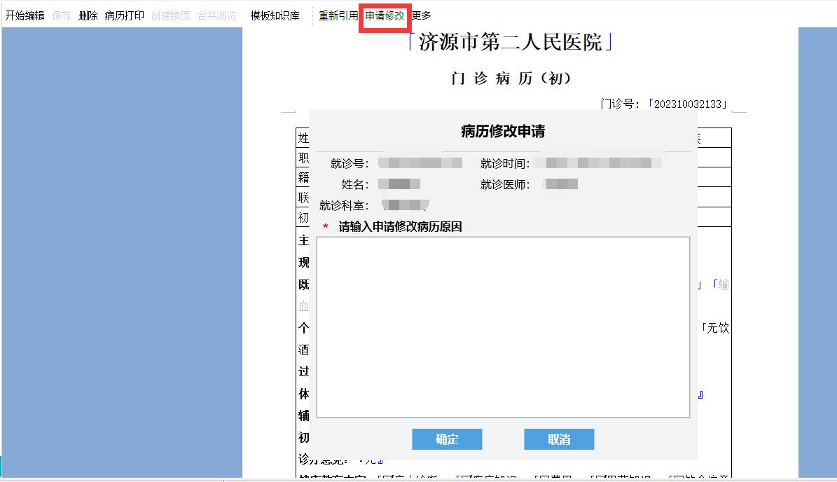 3、门诊病历需要修改