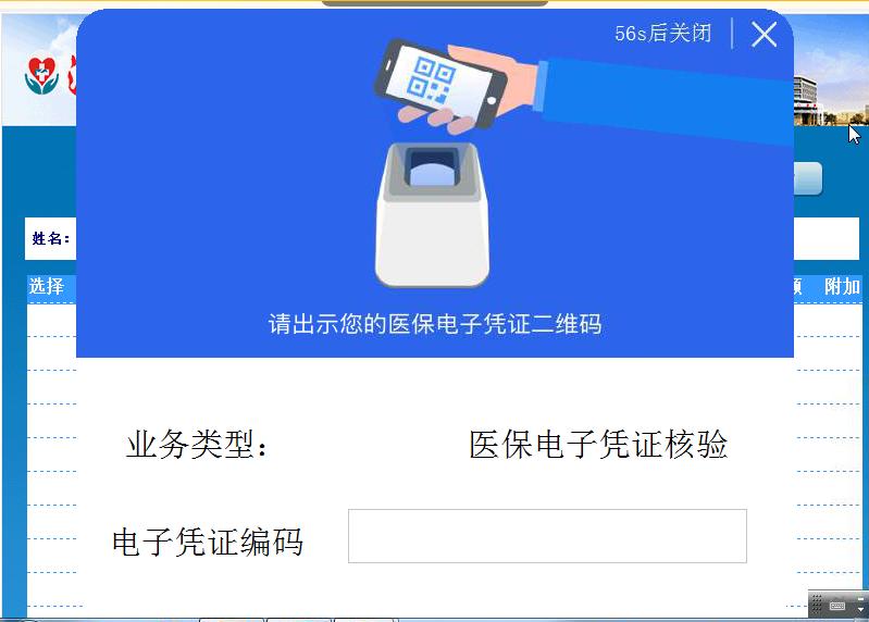 解决办法:点击右上角医保凭证读卡程序后刷医保电子凭证二维码。
