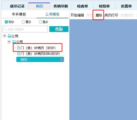 解决办法:先点击删除将续页或者复诊病历删除,再双击打开初诊病历。