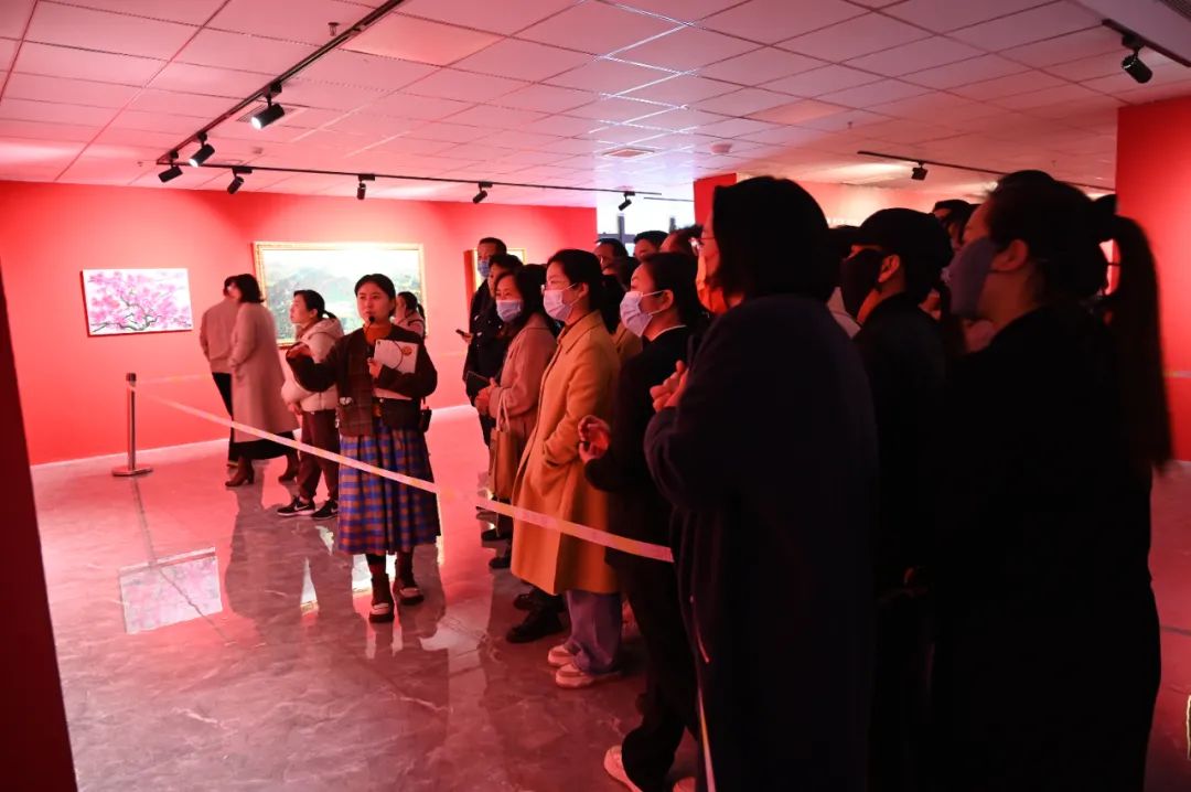 妙笔浅润缕缕香,画展铺卷参差绕。在艺术中行走,大家都安静下来,认真观看展览,拍照留念。有些职工讲到,自己家的孩子很喜欢画画,拍照让他们学习学习。还有职工讲到,要再次带着孩子观看画展。