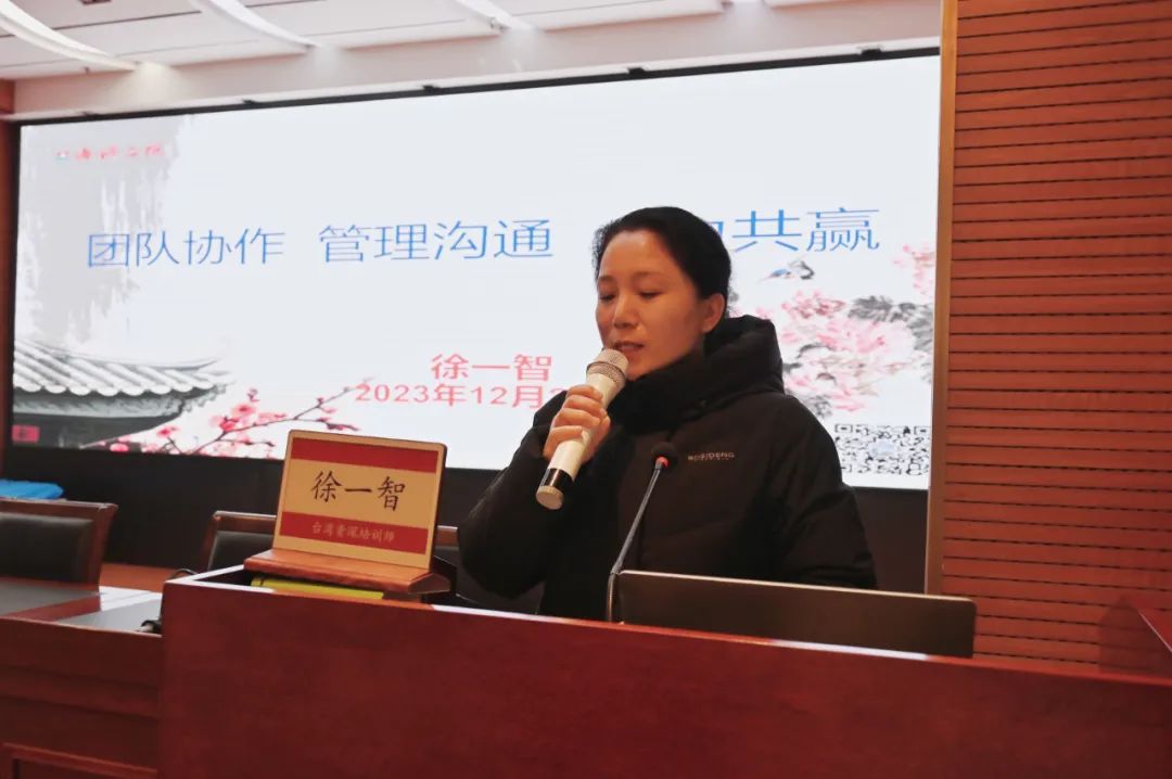 为提高医院中层管理干部的管理水平,加强干部沟通能力,打造高效团队,12月25日下午,济源二院特邀请来自宝岛台湾的资深培训师、领导力顾问徐一智专家以《团队协作 管理沟通 合力共赢》为主题,给我们带来了一堂生动的培训课程,全院干部职工200余人参加培训活动。