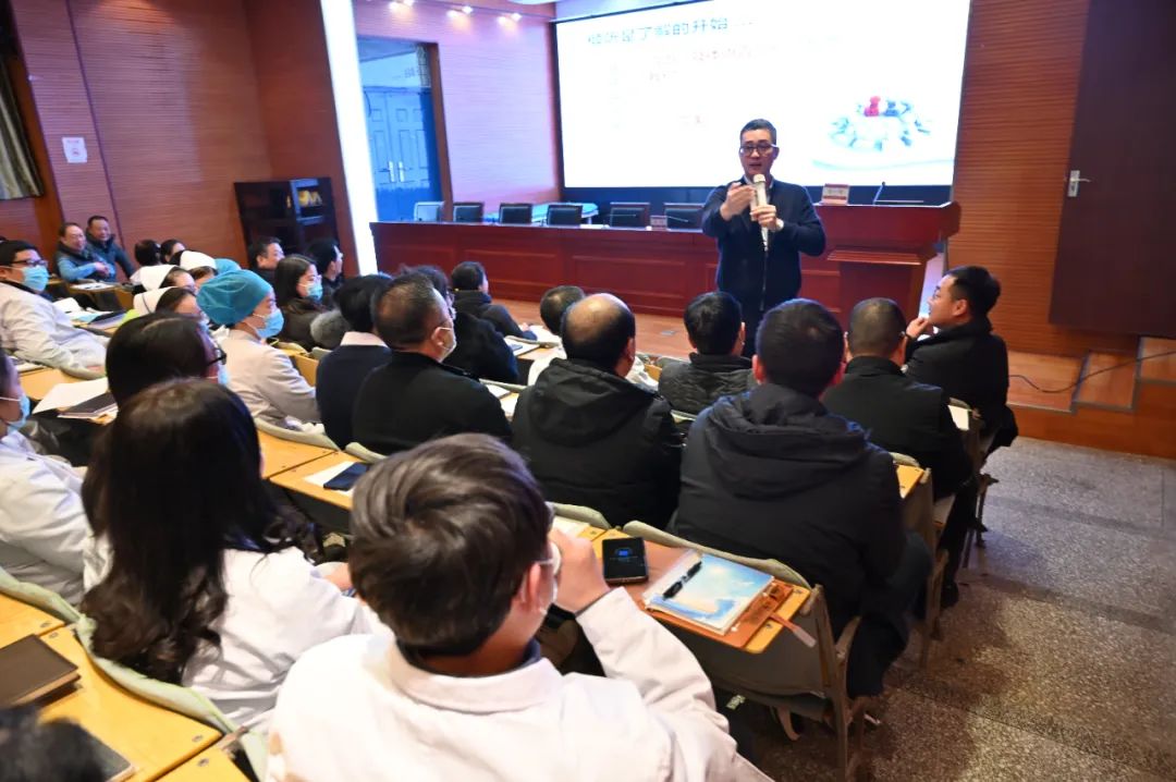 副书记任海燕主持培训。任书记对专家徐一智的到来表示欢迎,公立医院绩效考核是提升公立医院高质量发展的“风向标”,徐专家的培训课程,能帮助我们发现医院管理的短板,找到解决问题的途径,各临床及职能管理部门要借机多取经、多交流,打造高绩效团队。