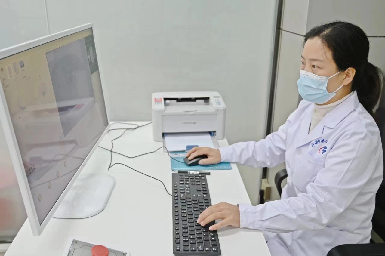 李小玲带着患者来到眩晕门诊,说:“你等一下,我去给你拿件棉衣。”说罢,她快速地在路上行驶,飞奔到家里找出爱人的棉衣和棉裤,再赶紧拿到医院,给患者穿上。