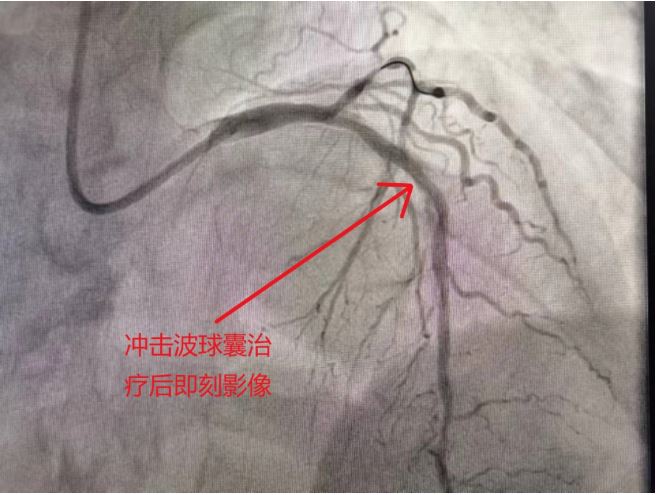 心内科薛瑞璐主任接着说:这样严重的钙化斑块仅仅依靠冲击波球囊就得到了顺利解决,冲击波球囊可有效断裂钙化、微创血管内膜、恢复血管顺应性,解决冠脉钙化病变,实现了冠脉钙化病变诊治的安全性、有效性同时兼顾,大大降低了患者的手术风险。这是济源二院初次对严重钙化病变行经皮冠状动脉腔内冲击波球囊导管成形术,有理由相信:随着冲击波球囊应用越来越多,济源的老百姓,罹患严重复杂钙化病变的冠心病患者将从中受益。