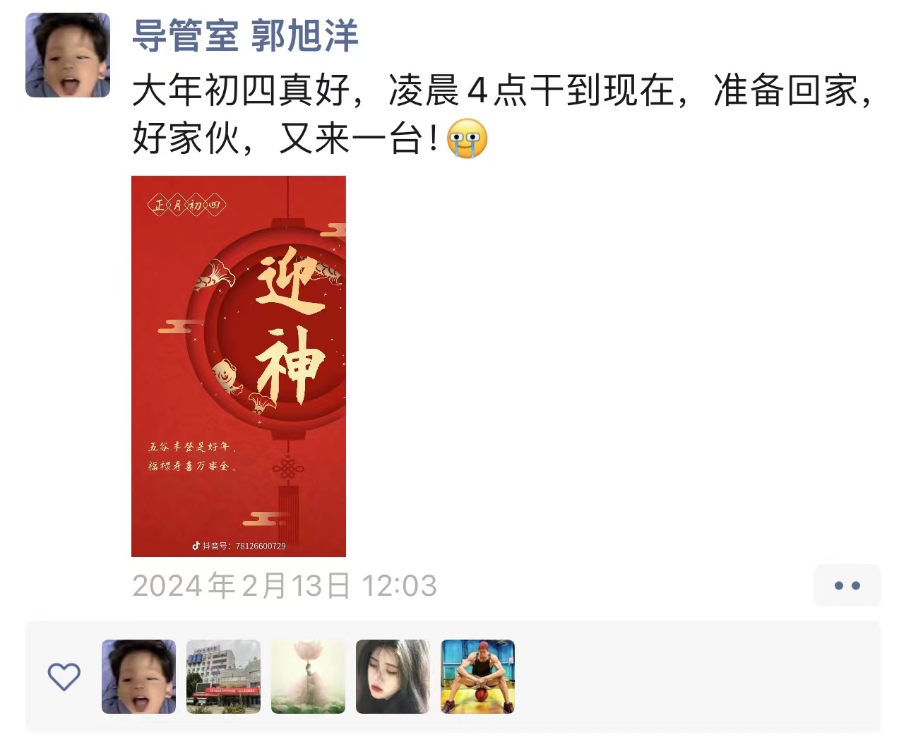 这只是一件发生在内二科的春节暖心故事,其实,春节期间,市二院每个科室的医护人员都以高度的责任感、饱满的工作热情坚守在“救死扶伤”的第一线。