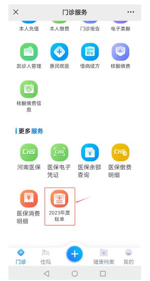或微信公众号搜索【济源市第二人民医院】并关注---点击屏幕右下角【掌上医院】---滑动屏幕到更多服务,点击【2023年度账单】